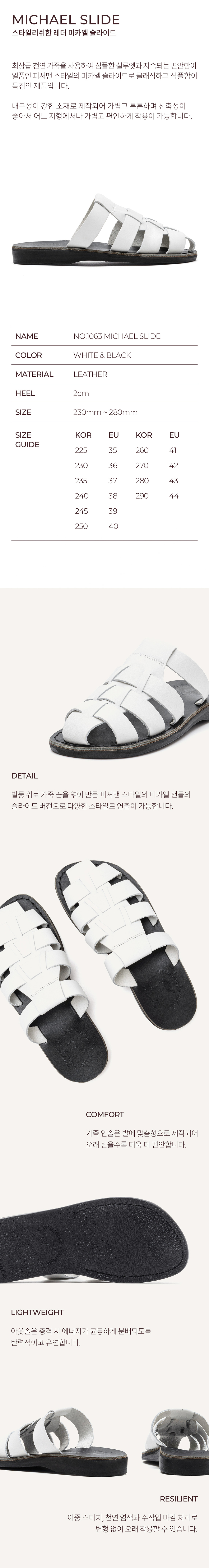 예루살렘 샌들 1063 미카엘 슬라이드 블랙 화이트