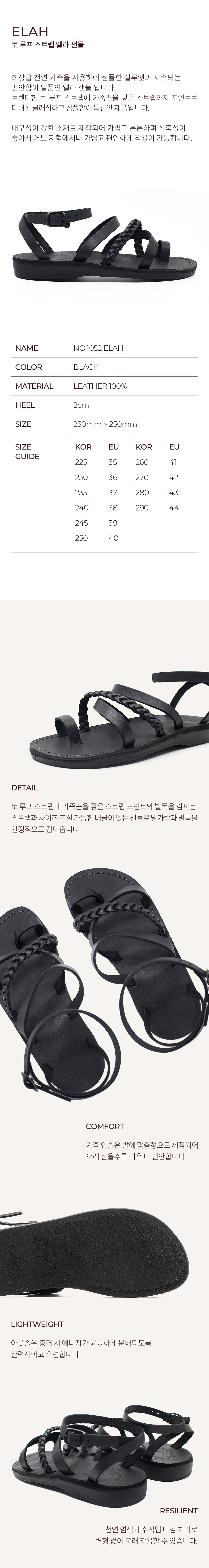 예루살렘 샌들 1052 토 로푸 스트랩 엘라 샌들 블랙