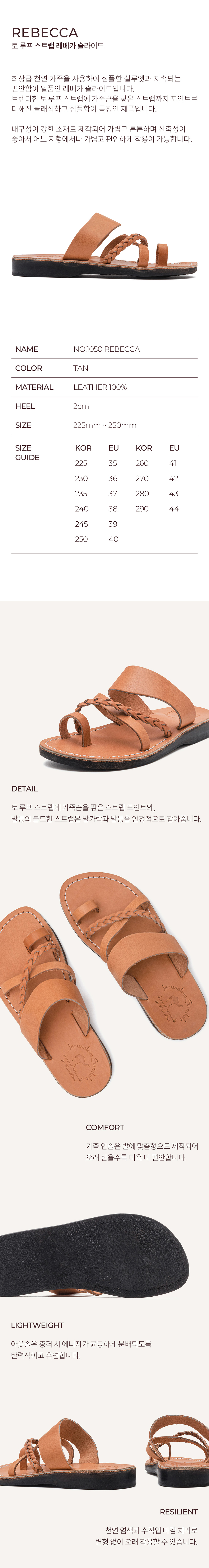 예루살렘 샌들 1050 토 로푸 스트랩 레베카 슬라이드 탄