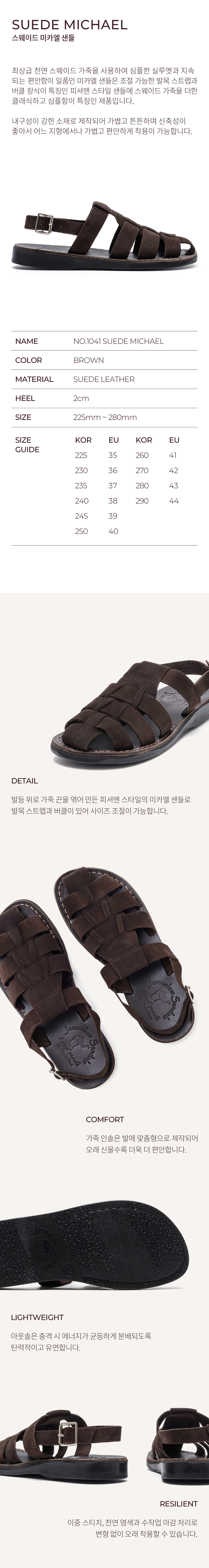 예루살렘 샌들 1041 미카엘 샌들 스웨이드 브라운