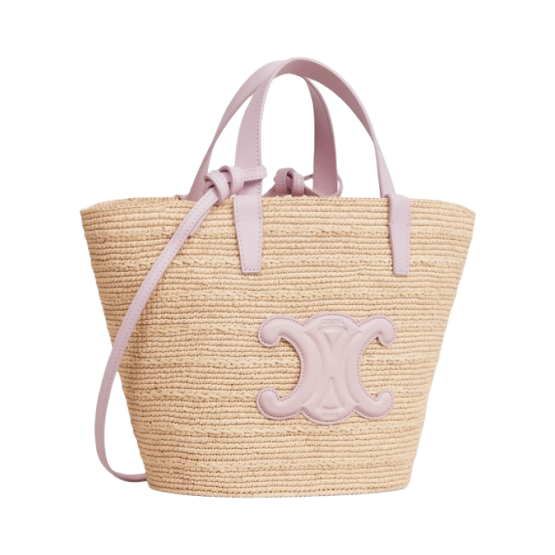 Celine Teen Supple Classic Panier in Raffia and Calfskin Pastel Pink
