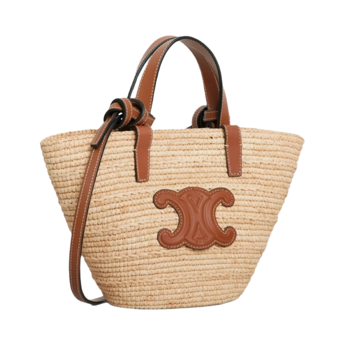 셀린느 라피아 & 카프스킨 나노 서플 클래식 파니에 내츄럴 탄