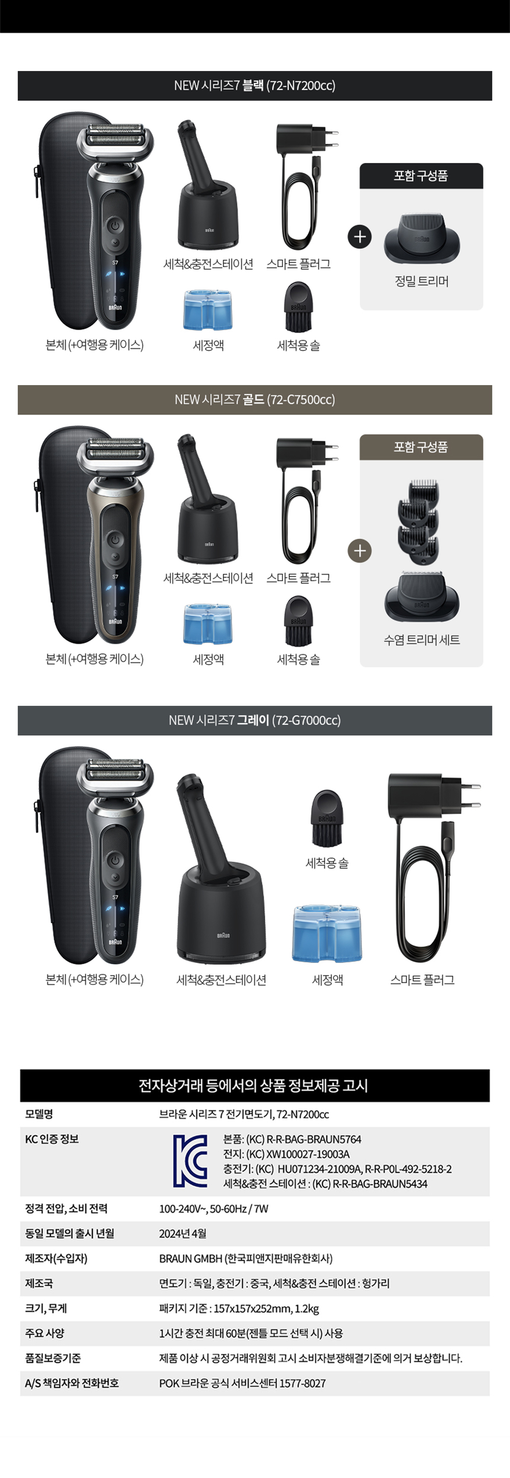 브라운 뉴 시리즈7 쉐이버+충전세척스테이션
