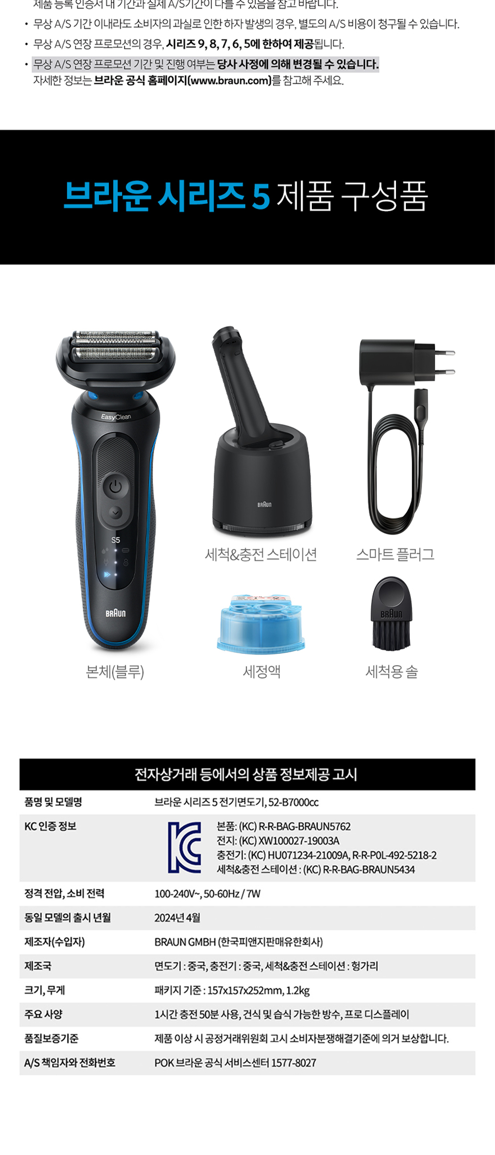 브라운 뉴 시리즈5 52-B7000cc 블루