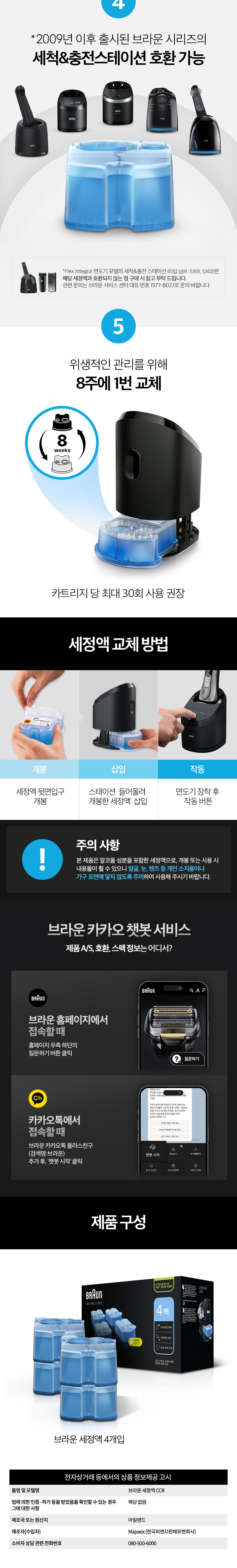 브라운 쉐이버 전용 3 in 1 클린 앤 리뉴 세정액 CCR4