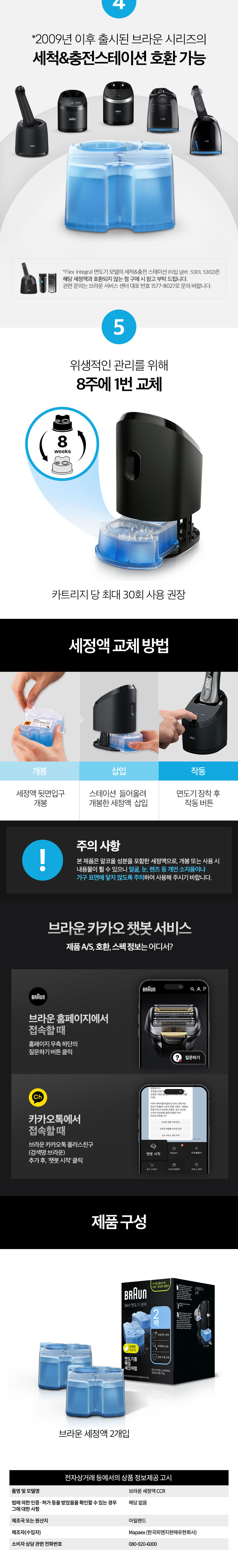 브라운 쉐이버 전용 3 in 1 클린 앤 리뉴 세정액 CCR2