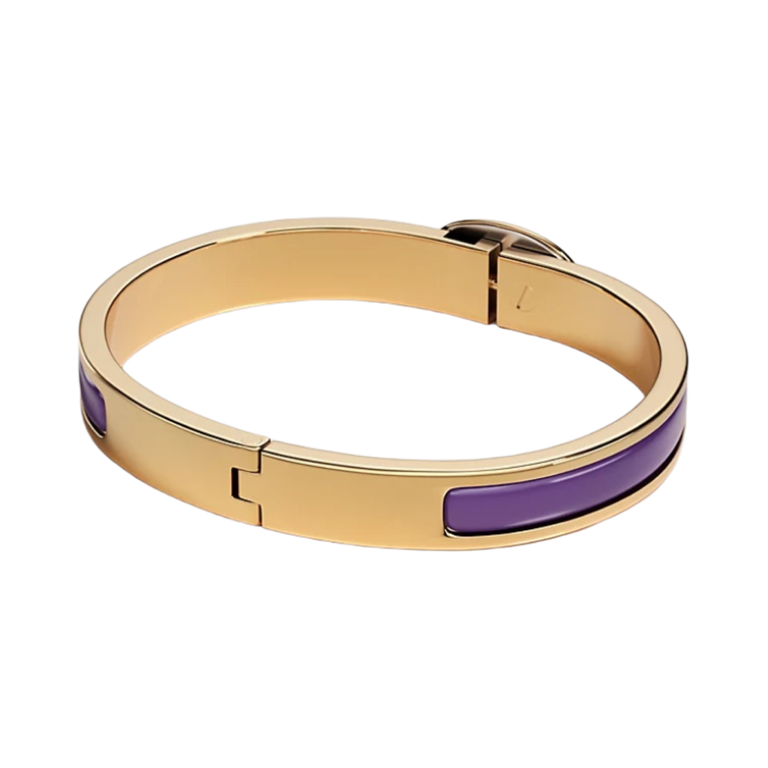 (W) Hermes Mini Clic Chaine D'Ancre Bracelet Gold & Iris Casaque