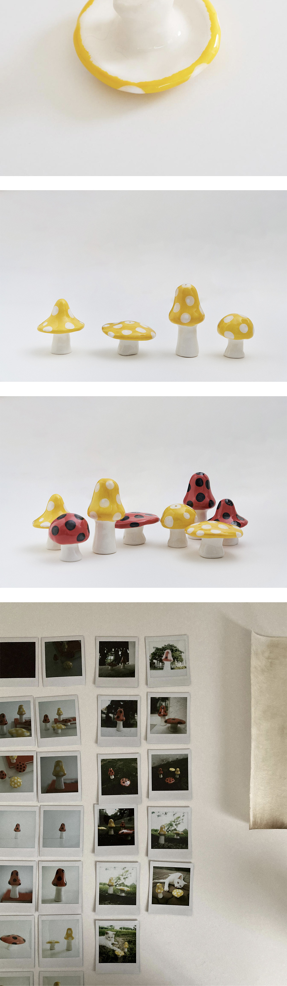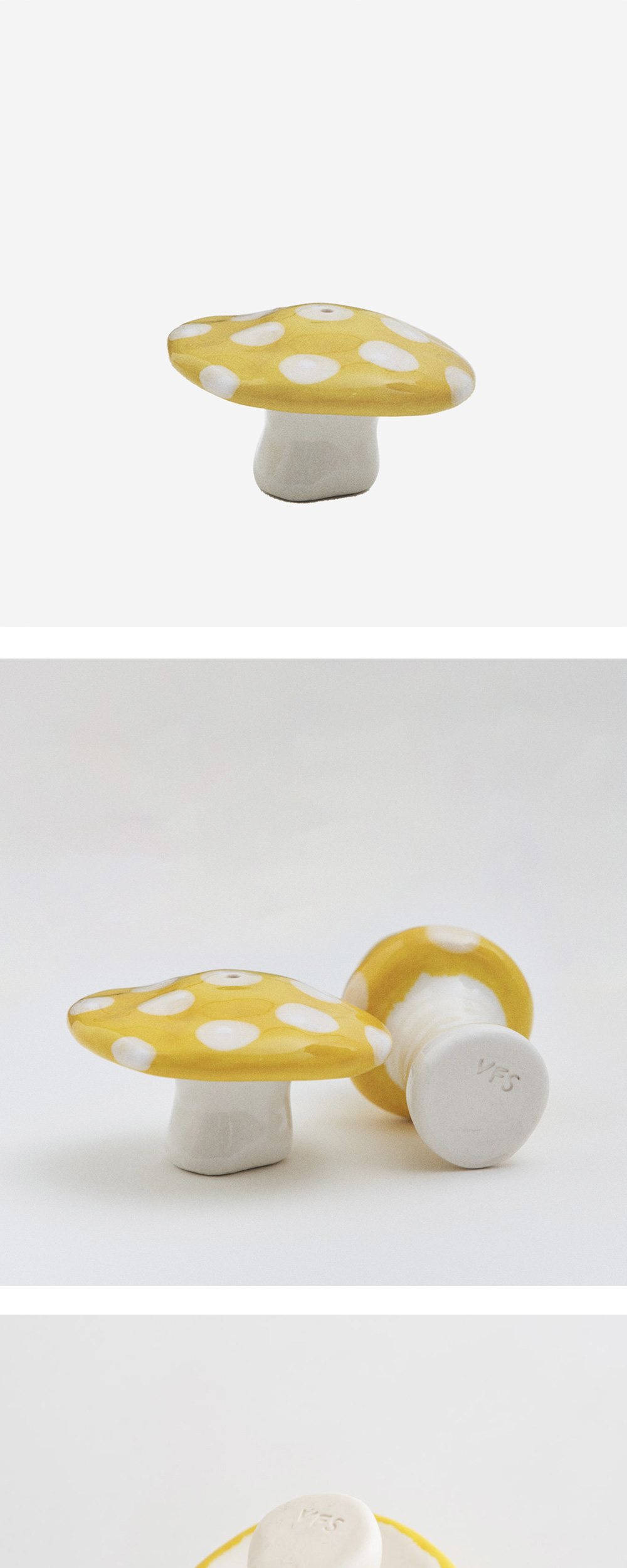 버섯 형태의 핸드 크래프트 인센스 홀더입니다. 상단부분 인센스 스틱을 고정할 수 있는 홀이 있으며 오브제로도 활용 가능합니다. 세라믹 아티스트의 손길로 빚어진 각 제품들은 불규칙한 고유의 형태를 이루고 있습니다. 담금 방식이 아닌 수작업 채색 방식으로 자연스러운 수채화 느낌을 담고 있습니다.