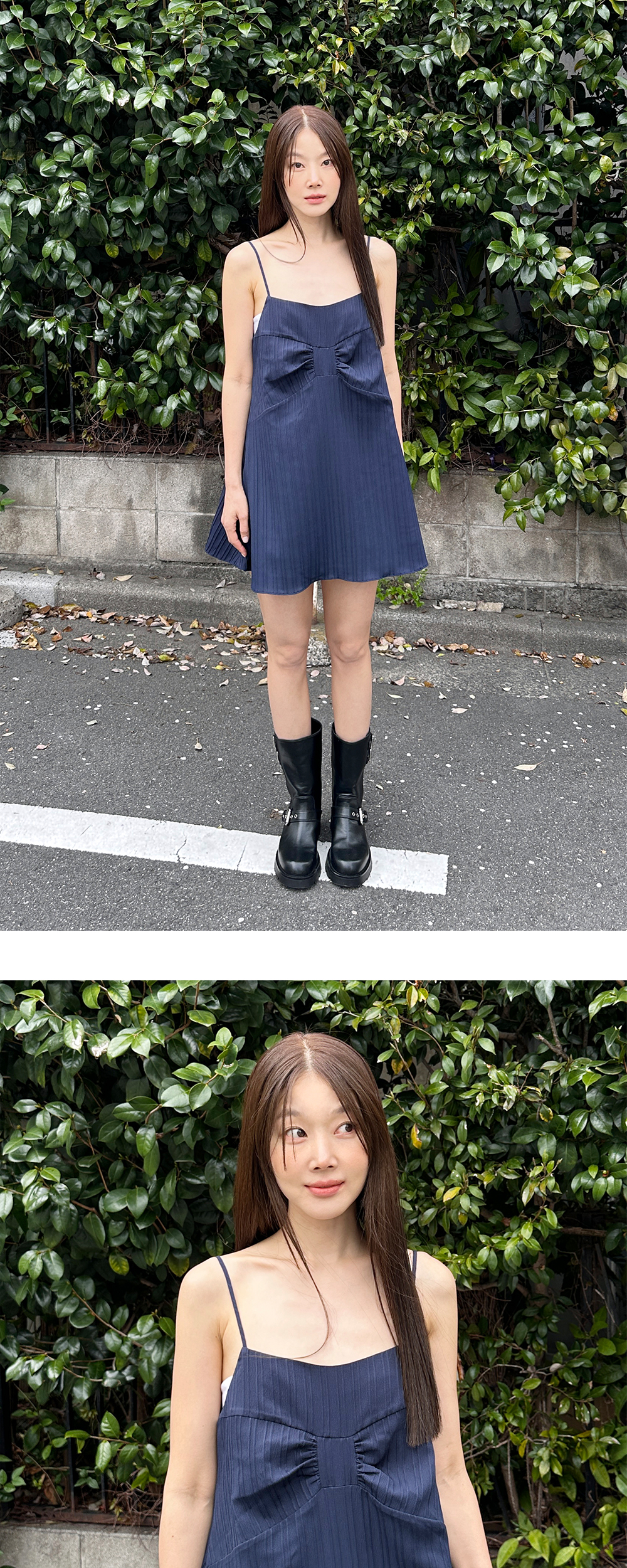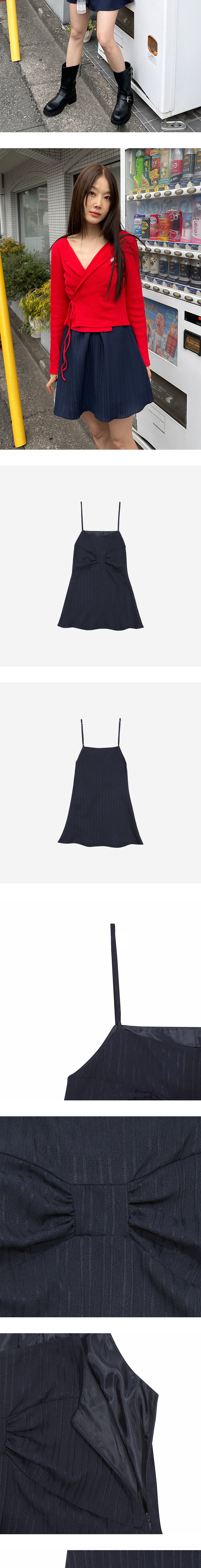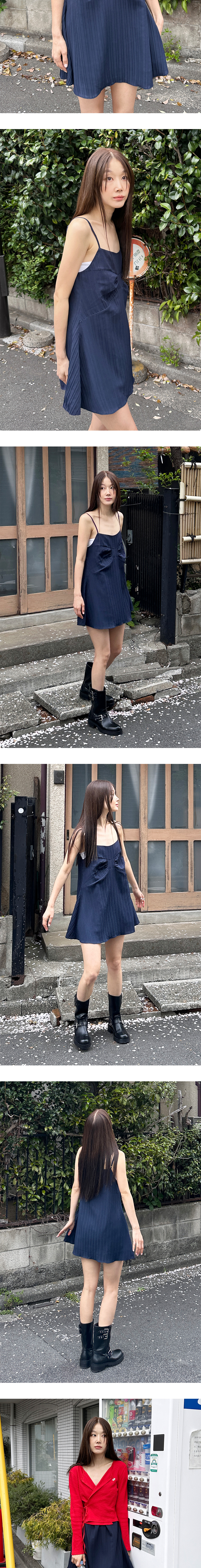 Margarin fingers 24 mid 블루밍 리본 원피스입니다. - 은은한 스트라이프 패턴 소재 - 러프하게 떨어지는 A 라인 미니 슬립 원피스 - 리본 모양의 가슴 디테일 - 사이즈 조절 팁으로 어깨끈 길이 조절 가능 * 어두운 컬러 특성상 마찰에 의한 이염이 발생될 수 있으니 구매 결정 시 유의 부탁드립니다. 밝은 색상의 아이템 또는 이너 제품과 함께 착용하는 것을 반드시 피해주시기 바랍니다.