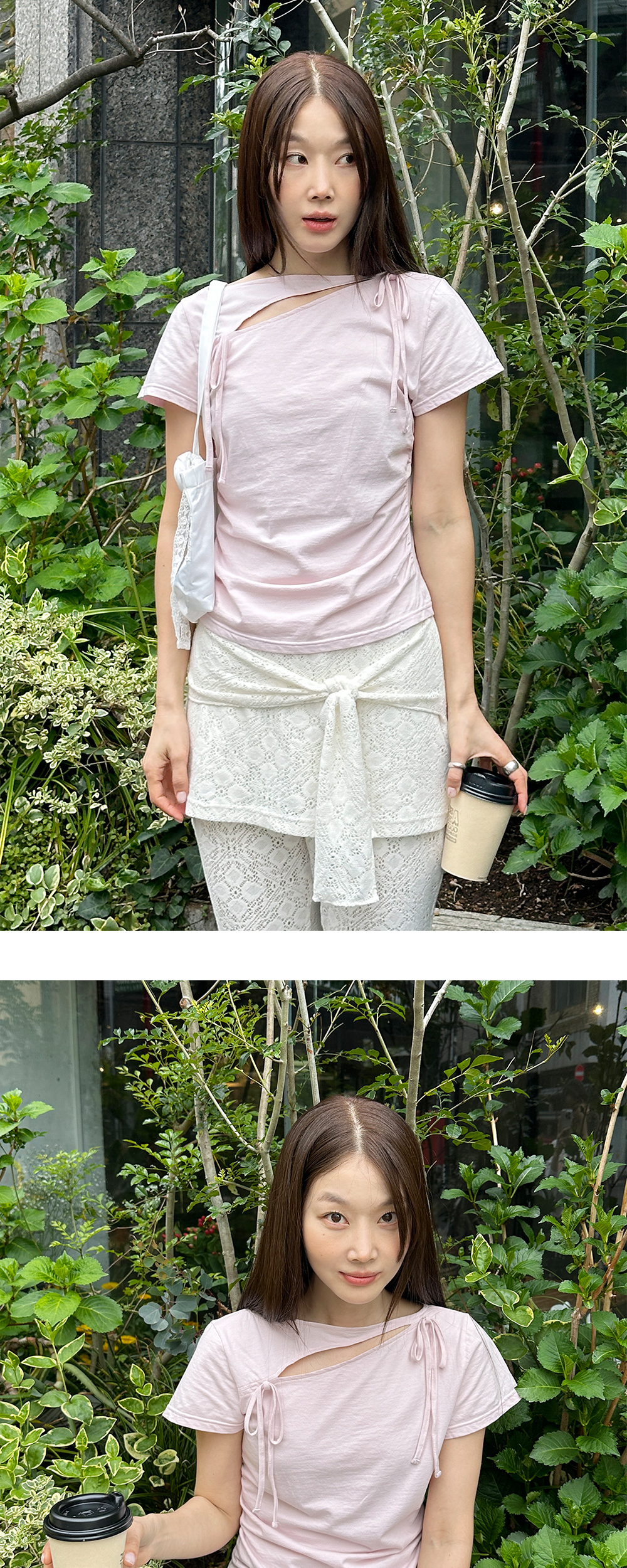 Margarin Fingers Ribbon Cutout T Shirt Light Pink