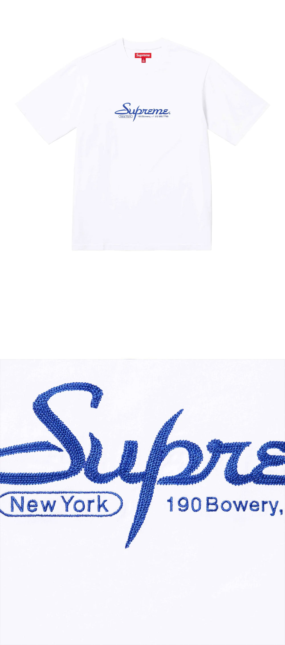 슈프림의 순면 저지 크루넥 티셔츠, 컨택트 숏슬리브 탑을 소개합니다. -가슴 부분 로고 자수