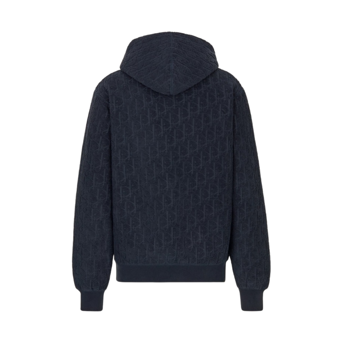 Dior Oblique Relaxed Fit Terry Cotton Jacquard Hooded Sweatshirt Navy Blue