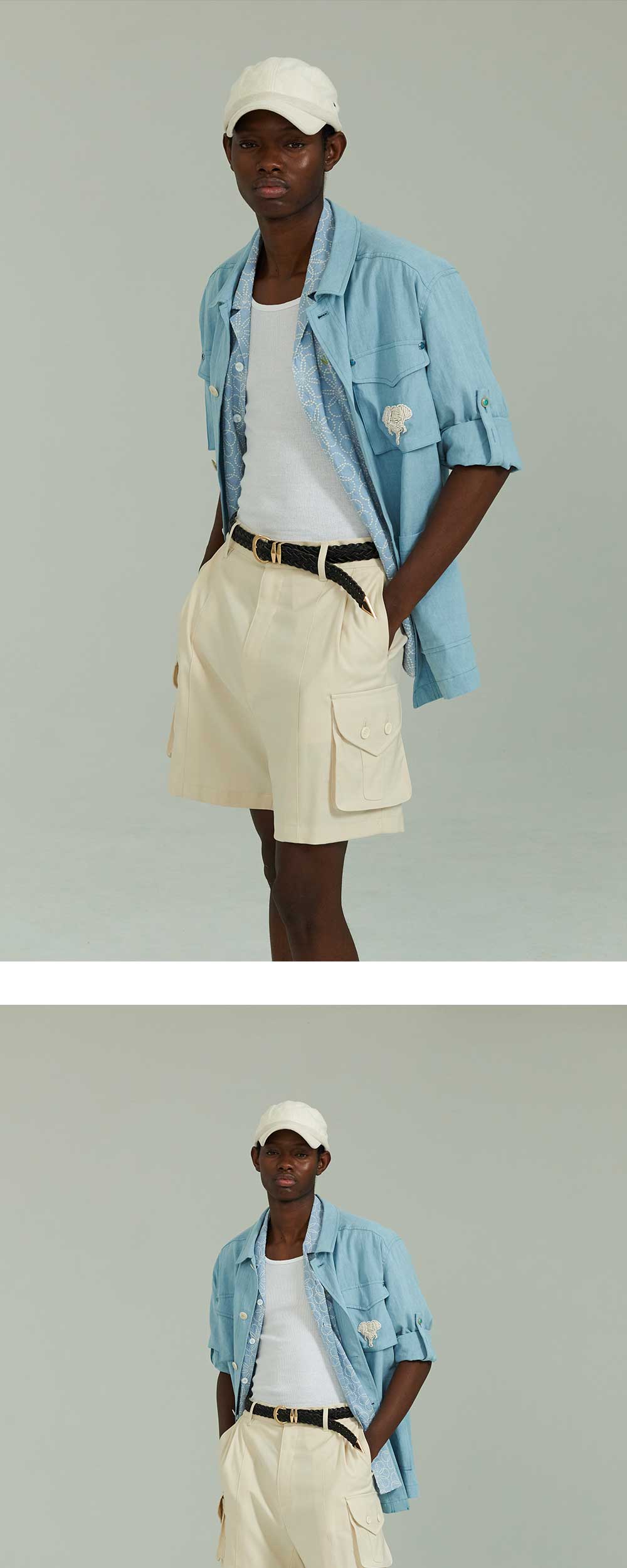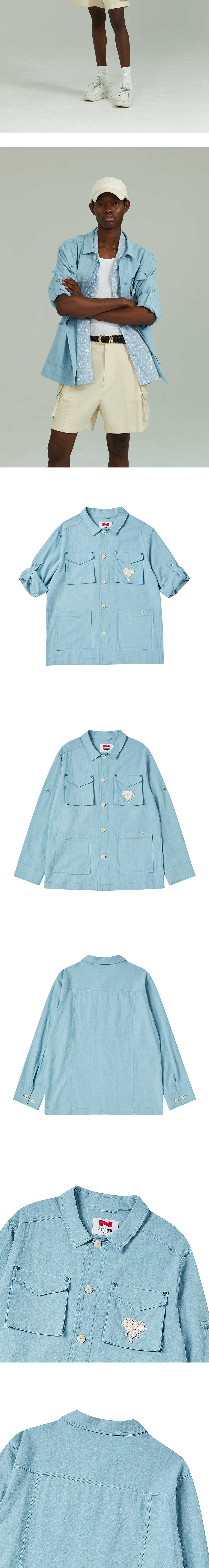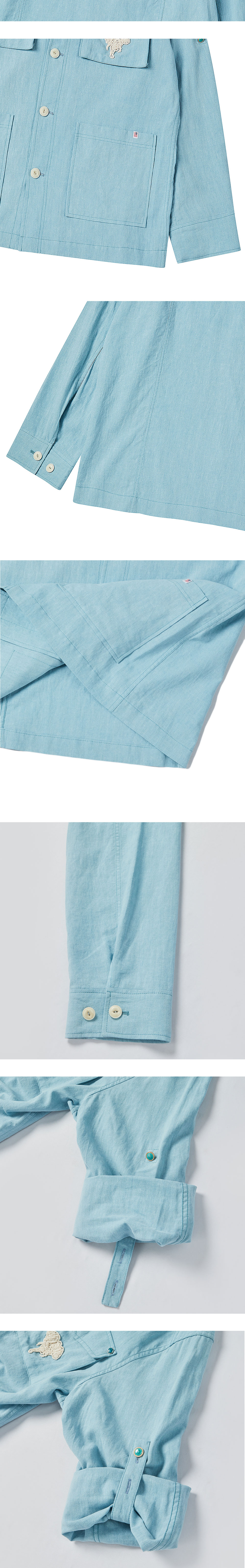 ㆍ컬렉션 라인의 프렌치 워크 자켓 ㆍ린넨 블렌드 원단으로 제작 ㆍ세미오버 핏으로 자연스러운 실루엣 연출 ㆍ핸드메이드 기법으로 제작된 비즈 로고 디테일 ㆍ상단 포켓 터키석 장식 디테일 ㆍ하단 포켓 성조기 포인트라벨 디테일 ㆍ소매부분 터키석 단추 디테일과 히든 비조 디테일로 자유로운 연출 ㆍ남여공용 착용 ㆍ여성분들은 M사이즈 착용 권장