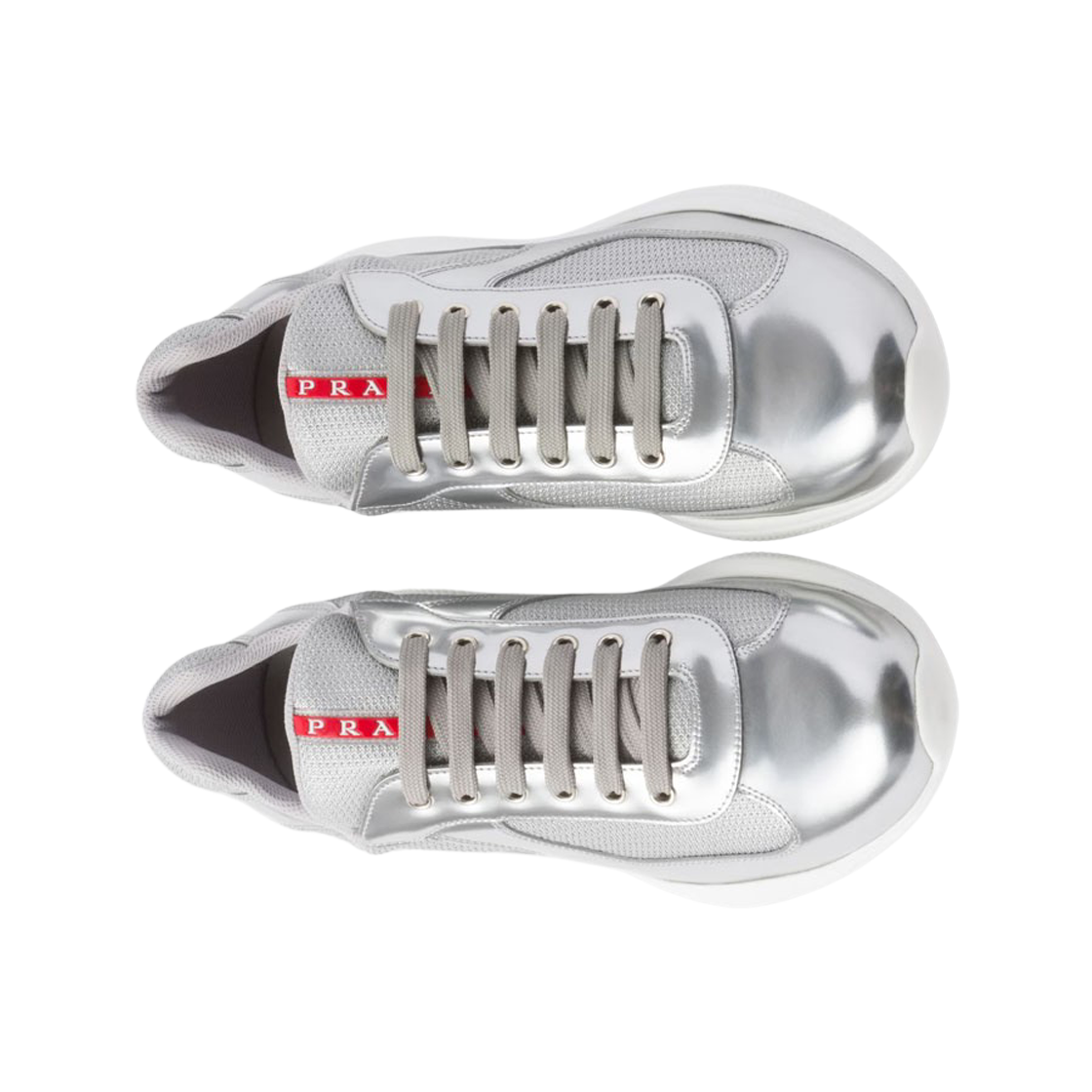 Prada America's Cup Metalic Leather and Bike Fabric Sneakers Silver