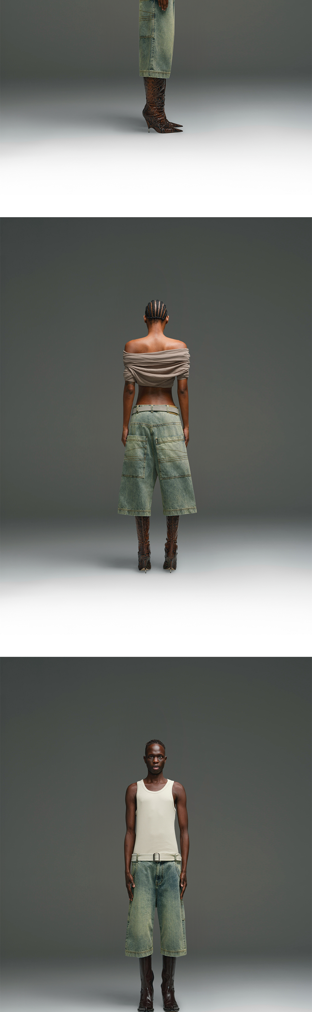 - 100% 면 일본 셀비지 데님 - 13.75oz - 큰 허리와 후면 포켓 - 3/4 기장 - YKK 금속 지퍼 및 숨겨진 버튼 잠금 * 모델 신체 스펙 M: 190cm - 착용 사이즈 M / W: 177cm - 착용 사이즈 M