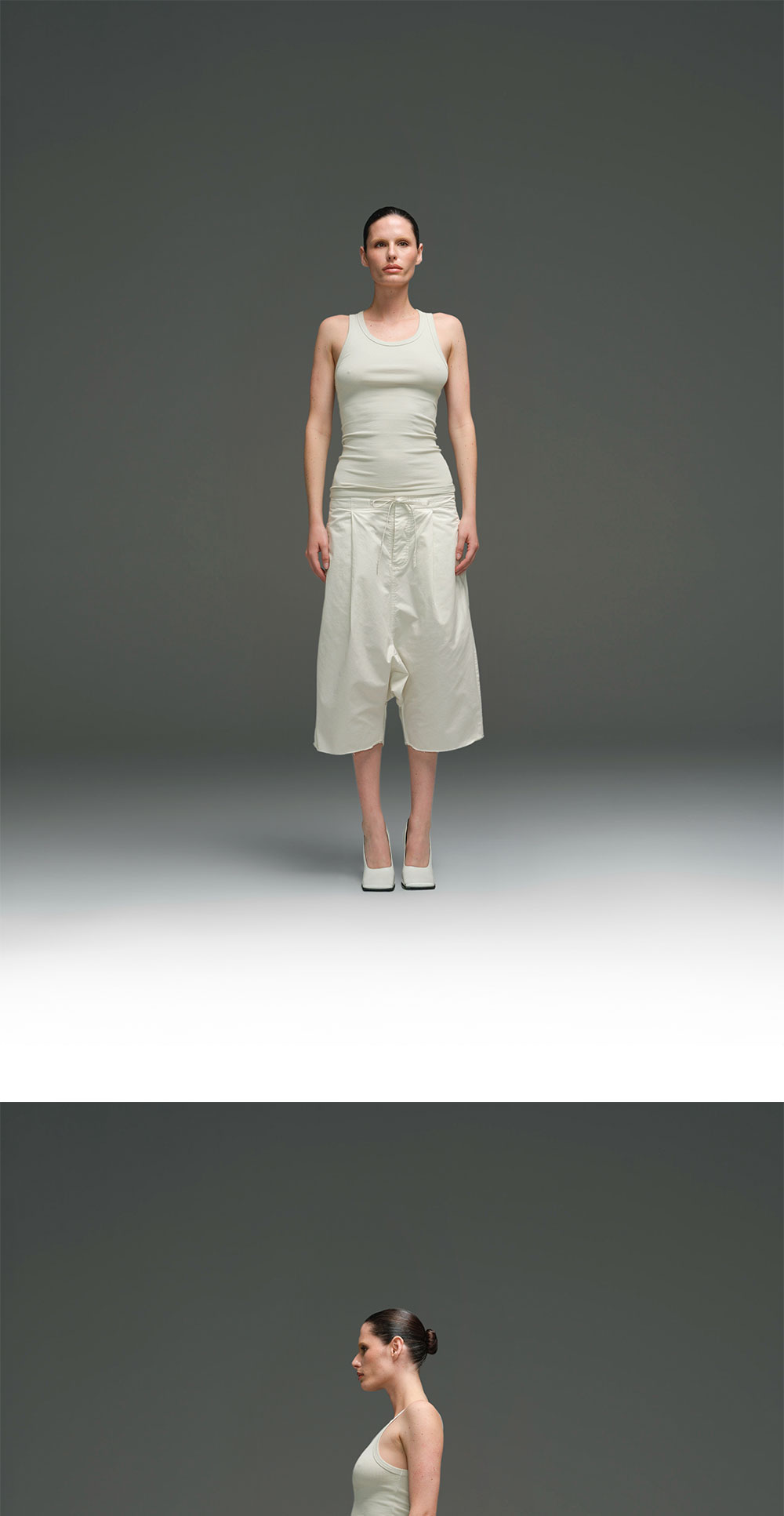 - 100% 코튼 원단 - 가젯 디테일 - 드롭 크로치 - 숨겨진 스트링 허리 밴드 - 숨겨진 스냅 버튼 잠금 - 허리와 후면 웰트 포켓 - 조형적인 다트 * 모델 신체 스펙 M: 190cm - 착용 사이즈 M / W: 177cm - 착용 사이즈 M