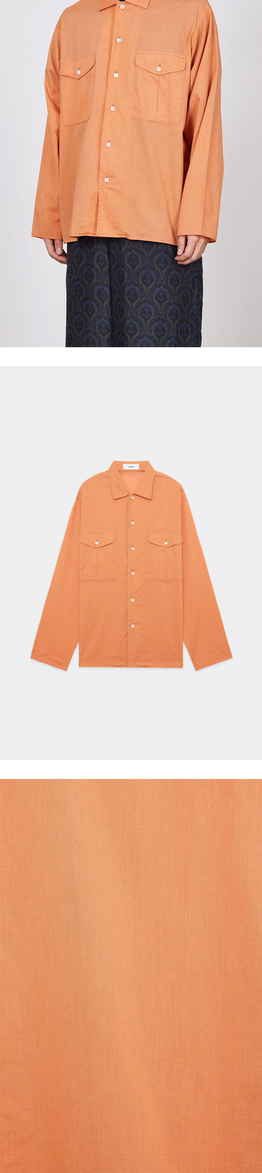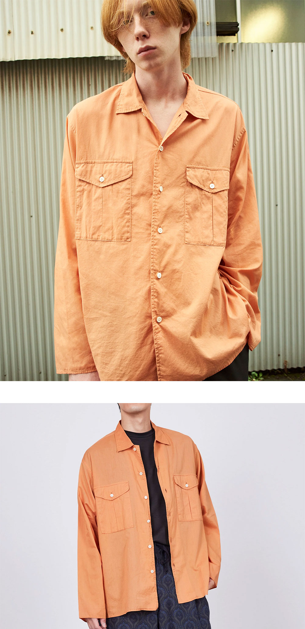 1940년대 미국 육군에서 지급되던 오피서 셔츠를 모티브로 한 셔츠입니다. 양쪽 가슴에 큰 포켓이 특징이며, 실루엣은 어깨너비와 몸통 너비 모두 여유를 두어 릴렉스한 핏입니다. 셔츠 한 장만으로도 완성도 높은 스타일을 연출할 수 있으므로 따뜻한 계절에는 단독으로 착용하기도 좋습니다.