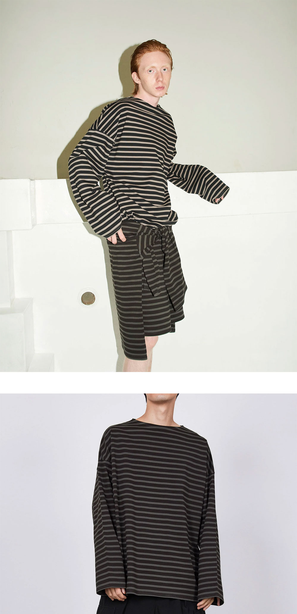여유로운 실루엣과 긴 기장의 롤업 소매 스타일이 강렬한 존재감을 드러내는 티셔츠입니다. 여름 시즌에는 반바지와 롤업 소매로 시원한 스타일을 즐겨보세요. *상세 이미지 내 모델1이 착용한 상품의 경우, 동일한 상품의 블랙 그레이 컬러인 점 참고 부탁드립니다.