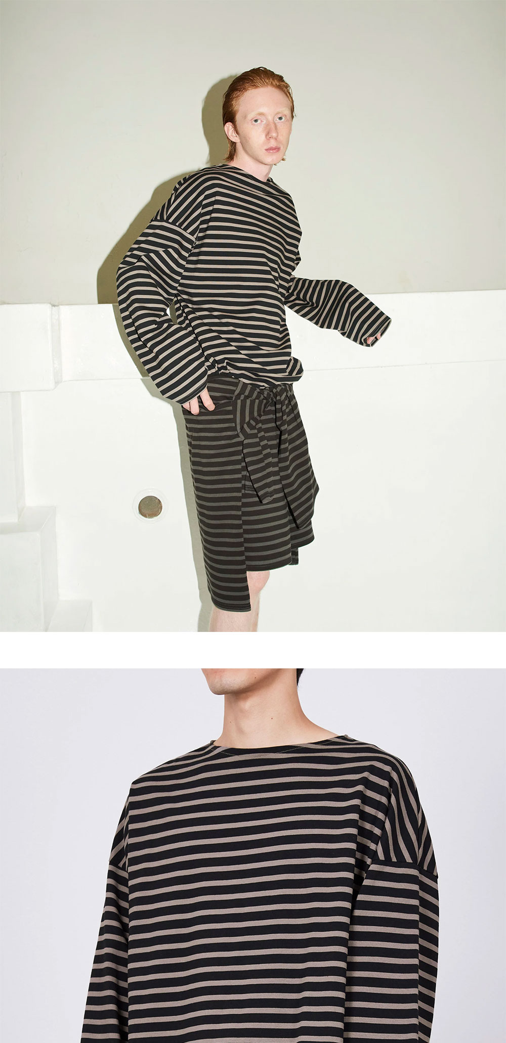 여유로운 실루엣과 긴 기장의 롤업 소매 스타일이 강렬한 존재감을 드러내는 티셔츠입니다. 여름 시즌에는 반바지와 롤업 소매로 시원한 스타일을 즐겨보세요.