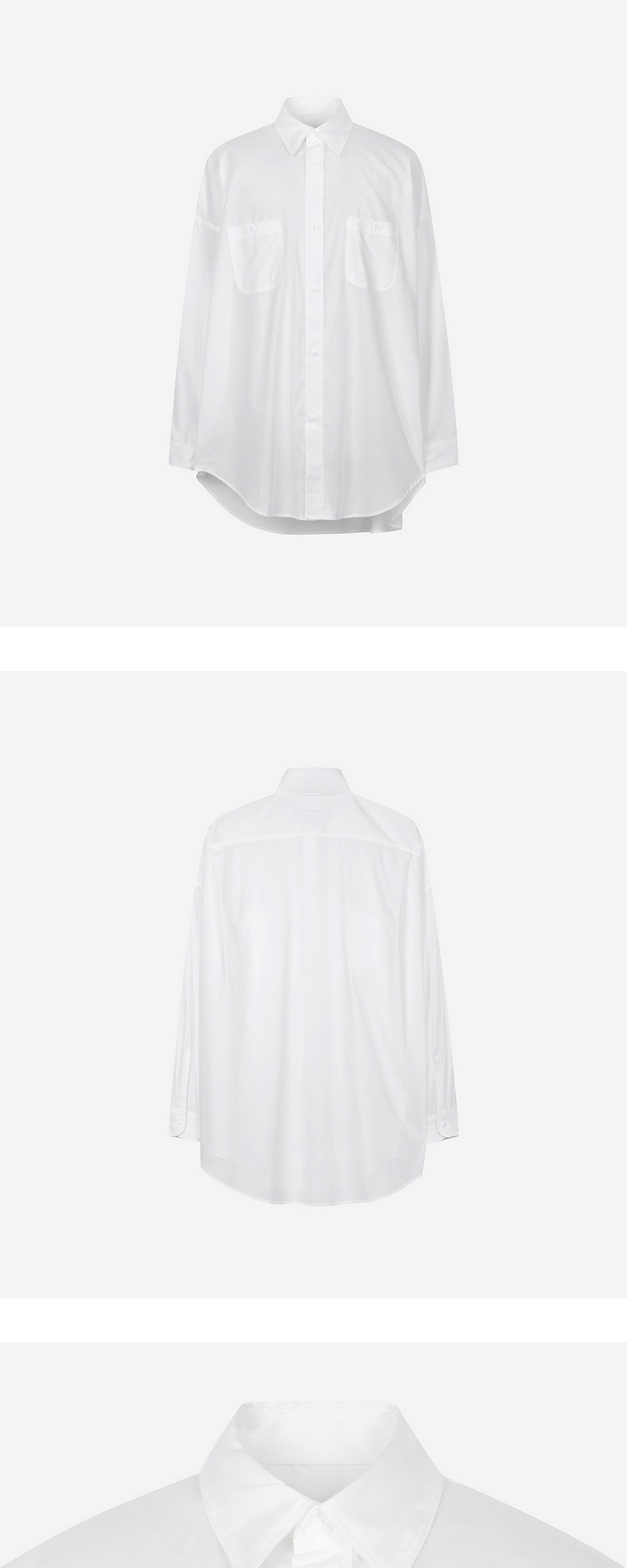 마카웨어 롱 텐트 셔츠 화이트는 마카웨어의 셔츠 중 가장 큰 사이즈로 드롭 숄더와 넓은 품이 특징입니다. 양쪽 가슴에는 워크 포켓이 부착되어 있고, 폭과 길이의 균형을 맞추기 위해 셔츠의 길이를 늘렸습니다. 후면의 2개의 액션 플리츠가 실루엣을 입체감있게 연출해주는 제품입니다. - 입체적이고 볼륨감 있는 실루엣 - 단품으로 착용해도 완성도 높은 룩 완성