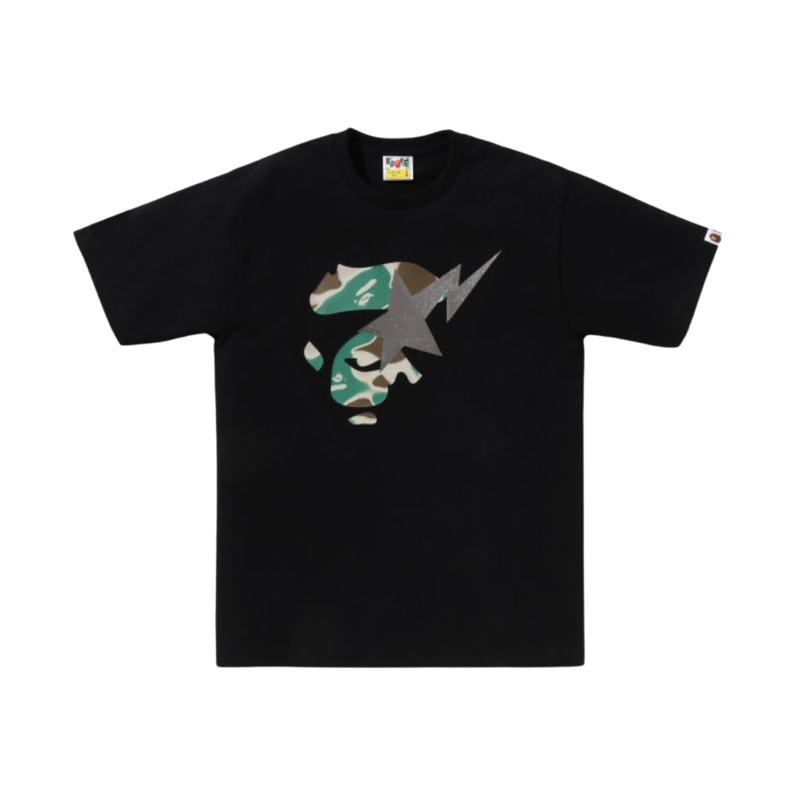 BAPE Liquid Camo Ape Face Sta T-Shirt Black Olive Drab