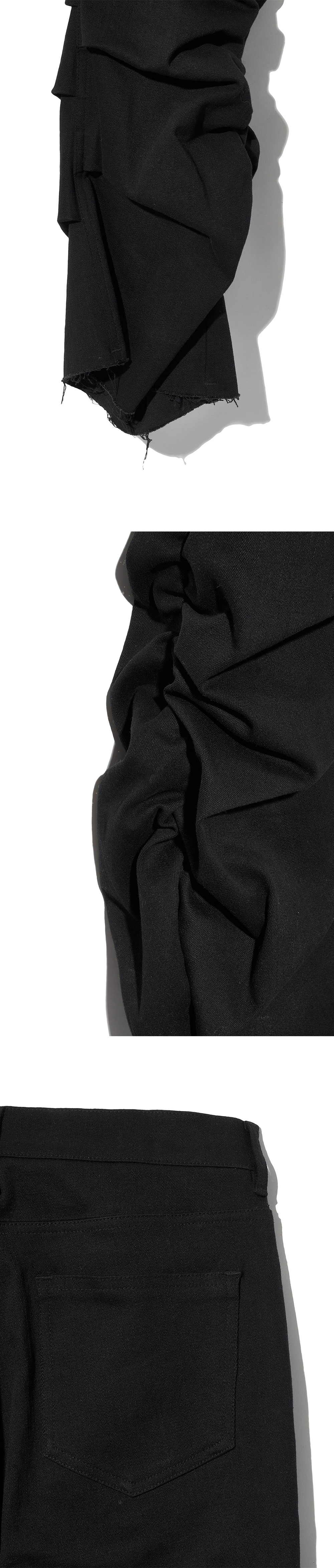 normal 워싱처리 후 부드러고 탄탄한 터치감 고밀도 normal워싱 YKK 지퍼 사용 밀도있고 스판성 좋은 원단 사용으로 편안함 밑단까지 셔링 디테일을 더해 자연스러운 볼륨감을 연출 밑단 내추럴 컷