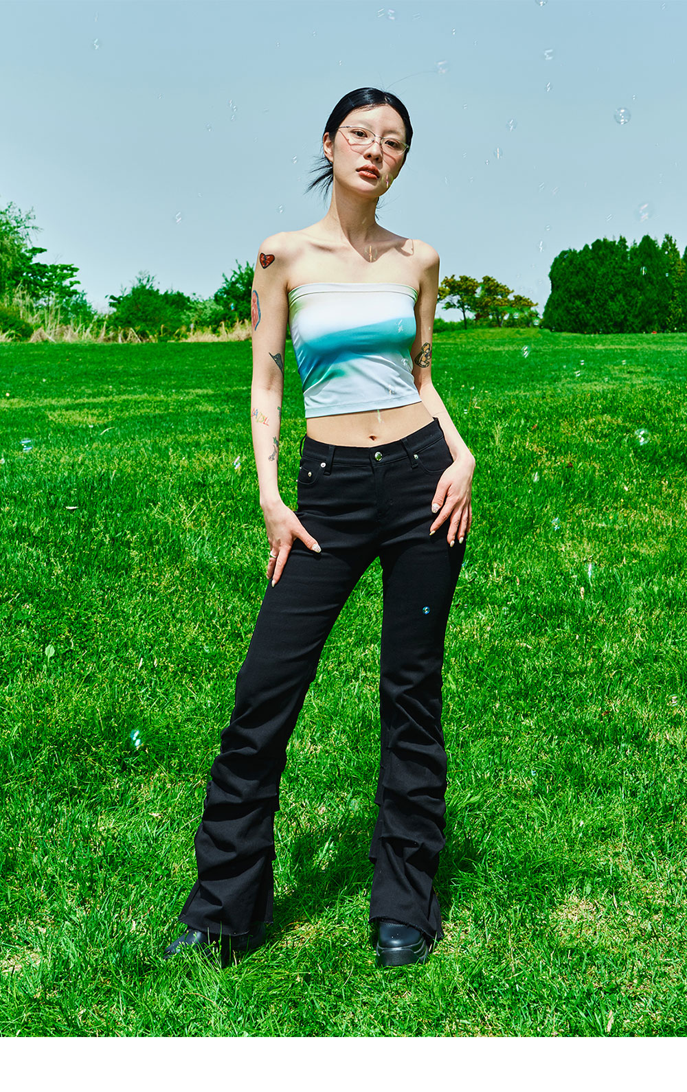 더아이덴티티프로젝트 우먼 셔링 부츠컷 데님 팬츠 블랙