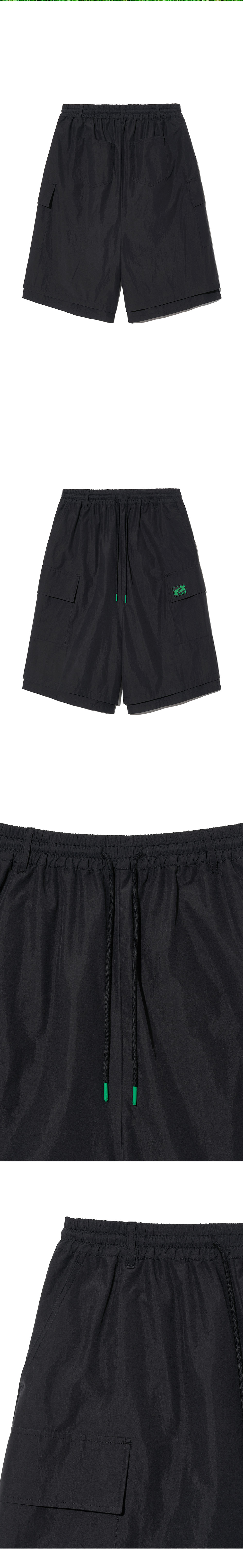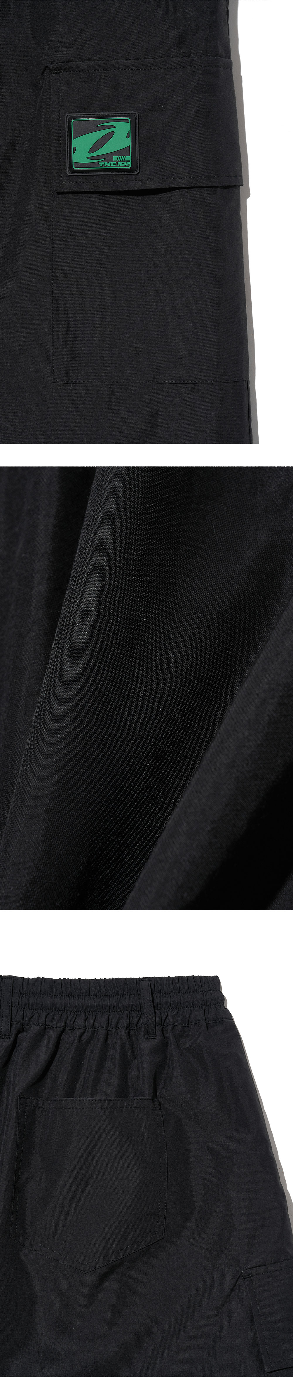 탄탄하고 부드러운 나일론+코튼 소재 사용 두겹 소재 사용으로 캐주얼하면서도 트렌디하게 완성 무릎 정도까지 오는 길이감과 넉넉한 핏 허리 스트링 팁 자체 개발 스트링 사이즈 조절 가능 양옆 빅 패치 포켓 스타일과 편안함을 모두 갖춘 아이템 포켓에 아이덴티티의 시그니처 러버 와펜 장식