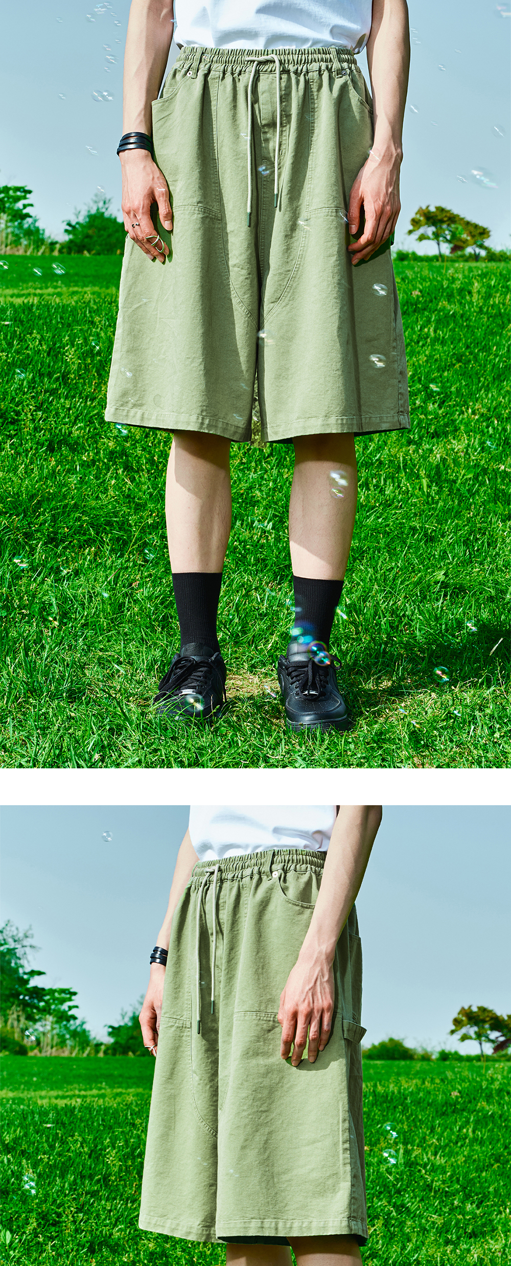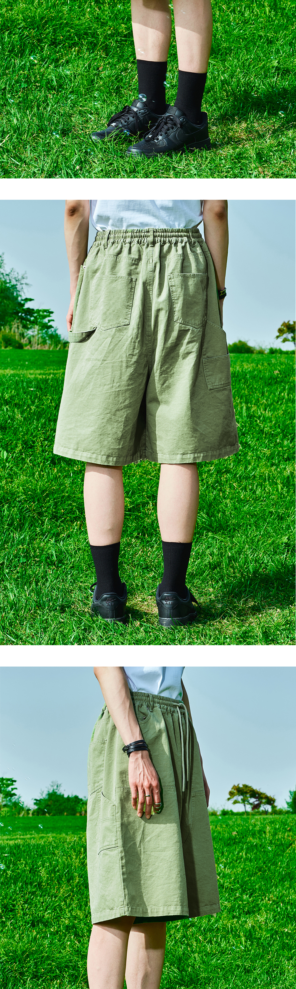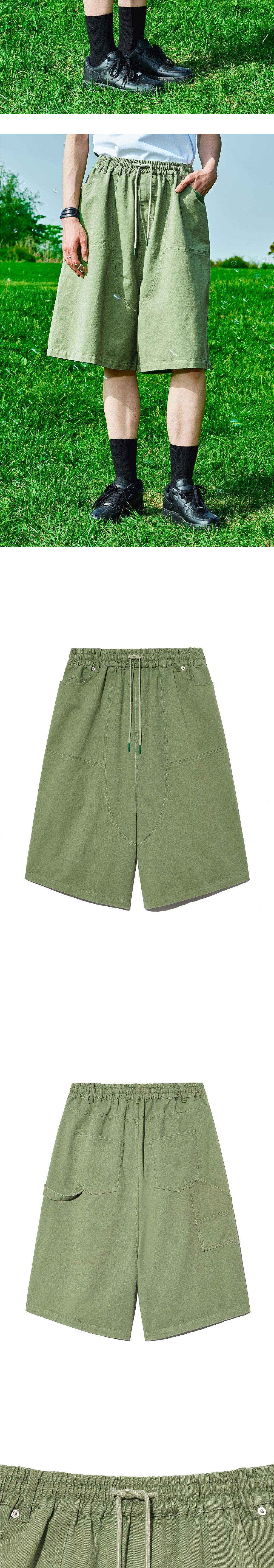 탄탄한 코튼 소재를 바이오 워싱하여 자연스러운 터치감이 돋보이는 팬츠 무릎 정도까지 오는 길이감과 넉넉한 핏 허리 스트링 팁 자체 개발 스트링 사이즈 조절 가능 양 옆 빅 패치 포켓 힙 포켓과 이어지는 카펜터 디테일로 포인트 스타일과 편안함을 모두 갖춘 아이템