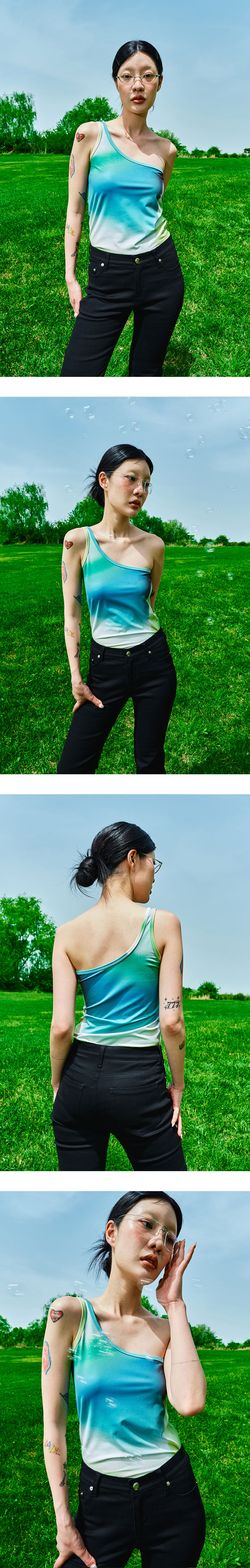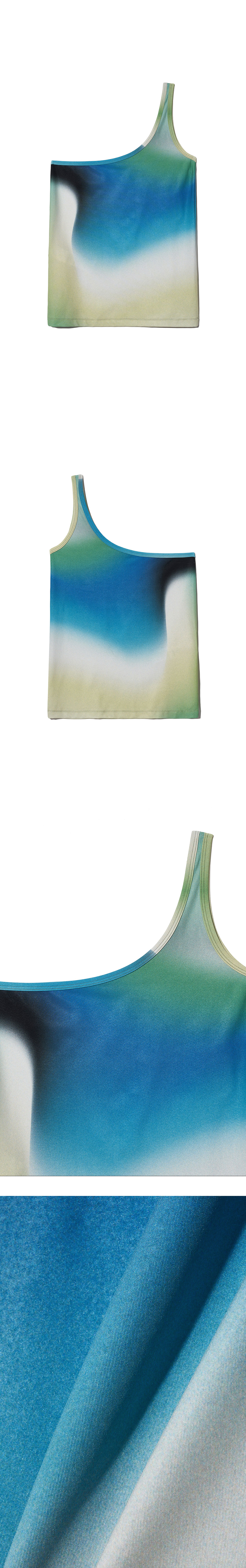 기능성 스판 소재 사용으로 편안하고 탄탄함 튜브탑 라인 디자인으로 한쪽 어깨끈이 있어 흘러내림이 없고 유니크한 스타일 디지털 프린팅 레이어드 또는 단독으로 착용하기 좋은 아이템