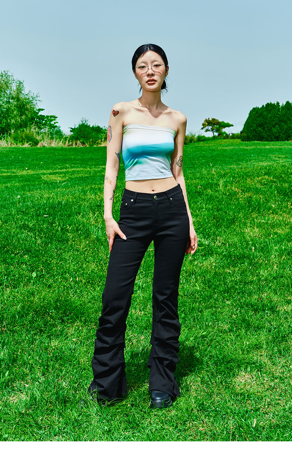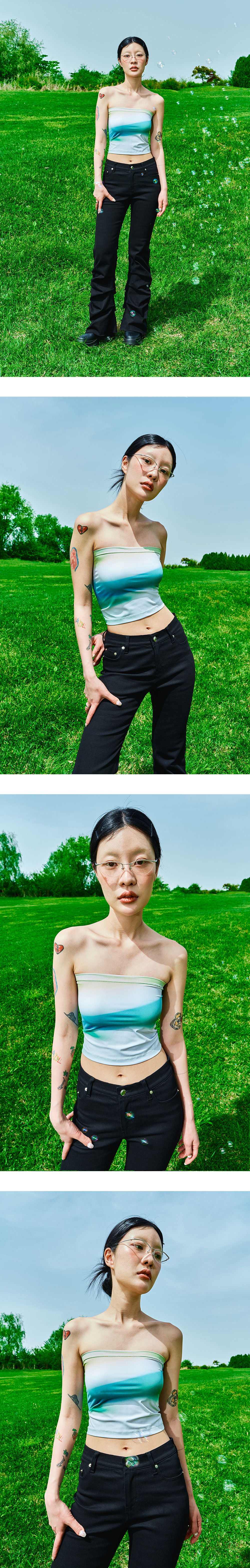 기능성 스판 소재 사용으로 편안하고 탄탄함 튜브탑라인 디자인 디지털 프린팅 레이어드 또는 단독으로 착용하기 좋은 아이템