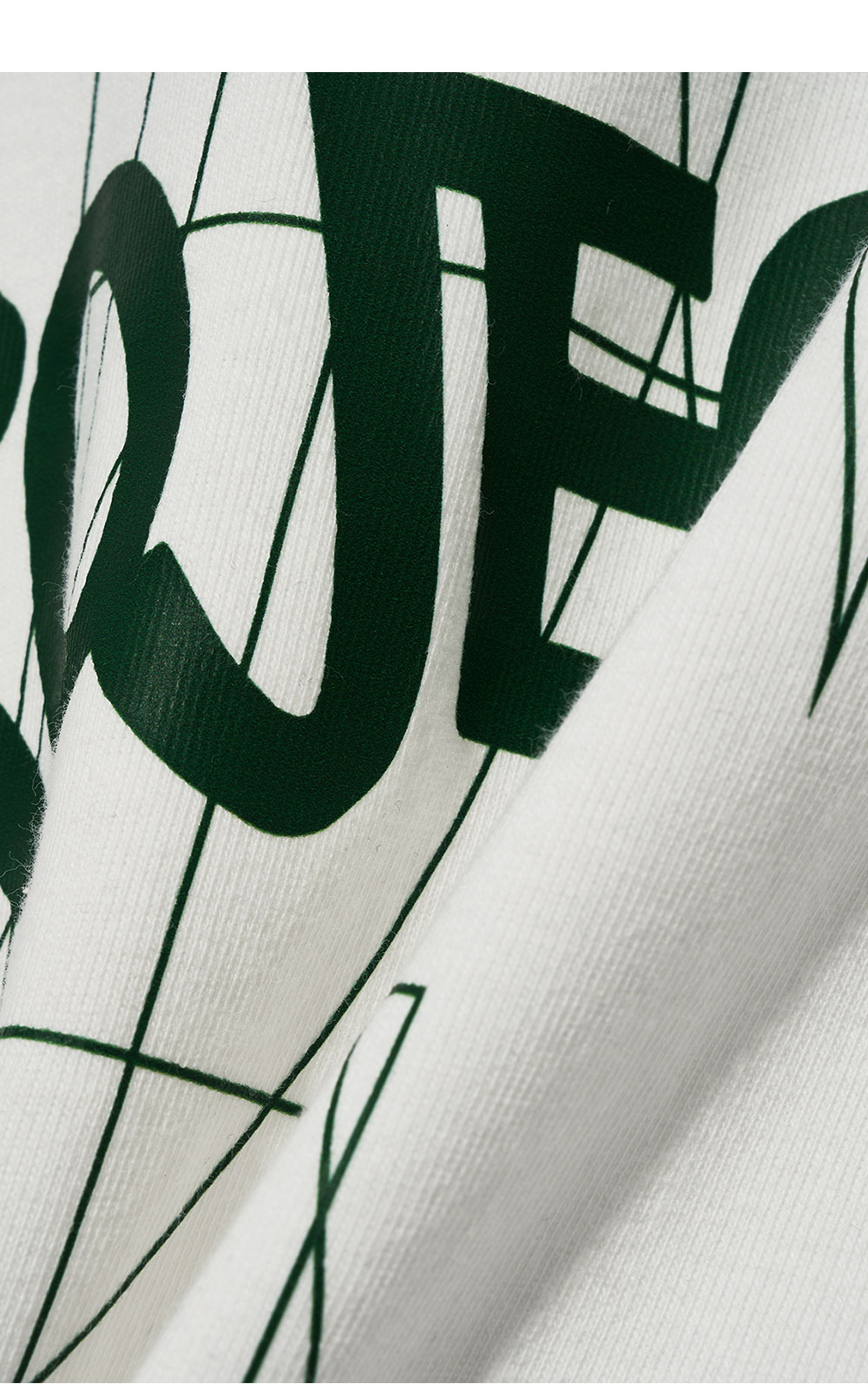 100% 코튼 소재로 편안한 착용감을 선사하는 반팔 티셔츠 넥부분에 30/2합의 1x1 립을 사용하여 탄탄함 코튼소재와 박시핏으로 디자인되어 트렌디하면서도 여유로운 핏 다양한 체형에 어울리며, 스트릿 패션과 캐주얼한 스타일 전면 아이덴티티 초록레터링 아트워크로 특별함을 더한 아이템