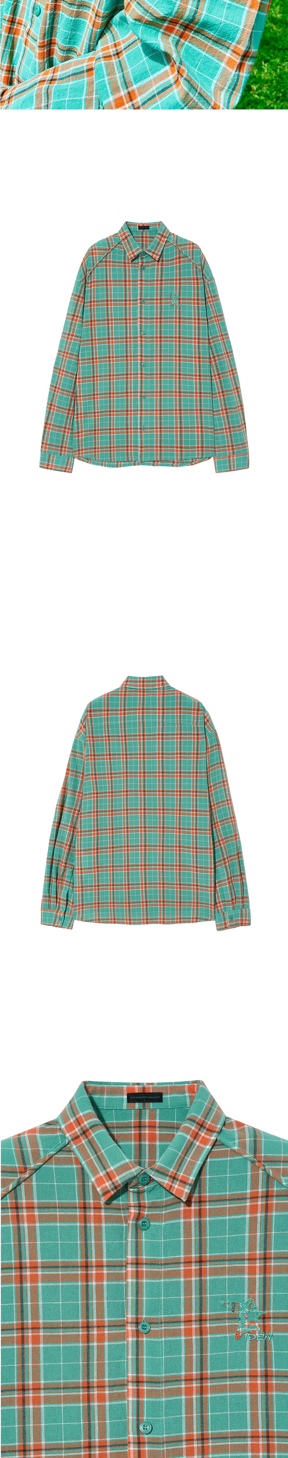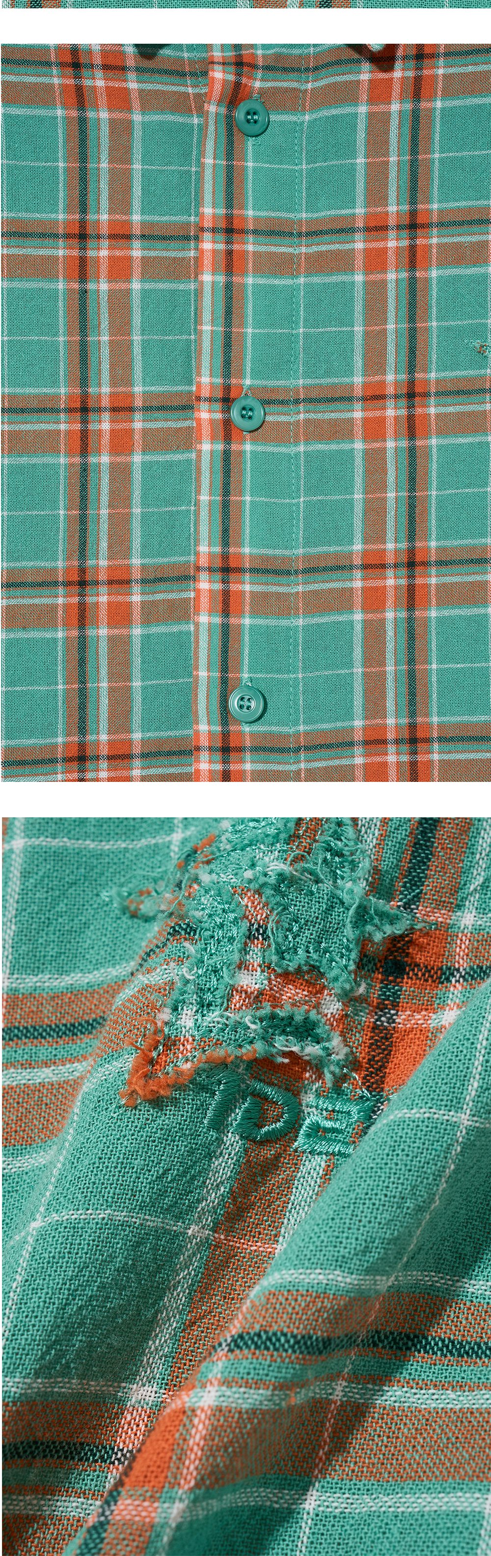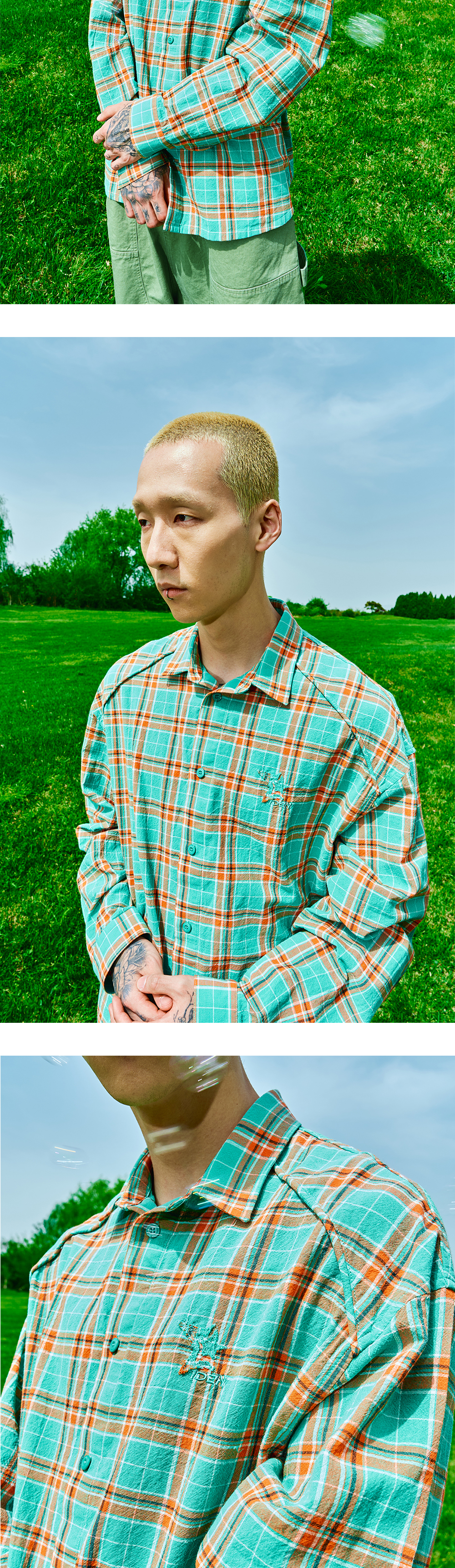 100% cotton 소재로 편안한 착용감을 선사하는 셔츠 오버핏실루엣 포인트 컬러감과 체크 패턴 캐주얼룩에 포인트를 줌 다양한 체형에 어울리며, 스트릿 패션과 캐주얼한 스타일 전면 아이덴티티 자수 패치 아트워크 가벼운 소재로 간절기에 높은 활용도 고밀도 normal 워싱