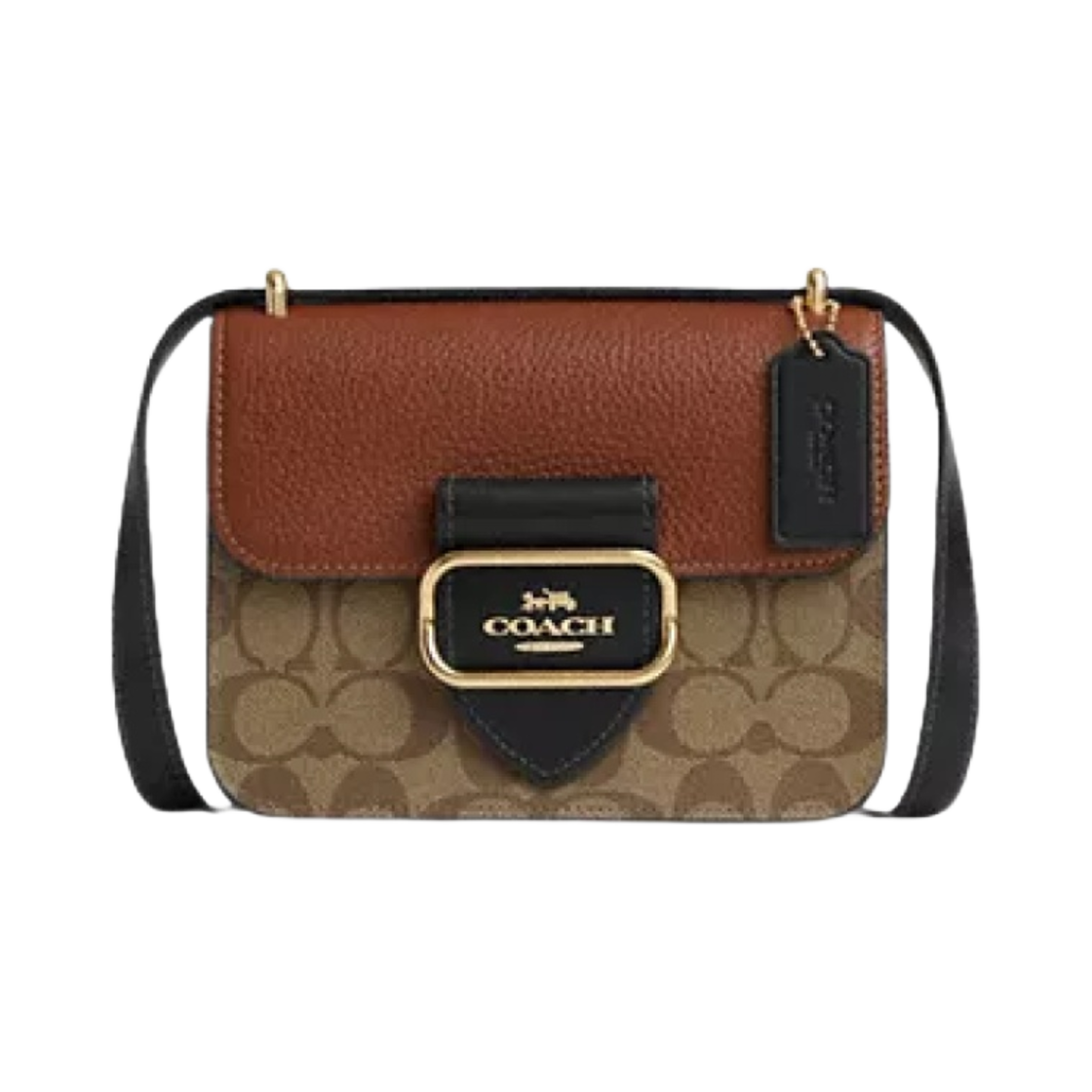 코치 컬러블럭 시그니처 캔버스 모건 스퀘어 크로스바디백 골드 카키 멀티