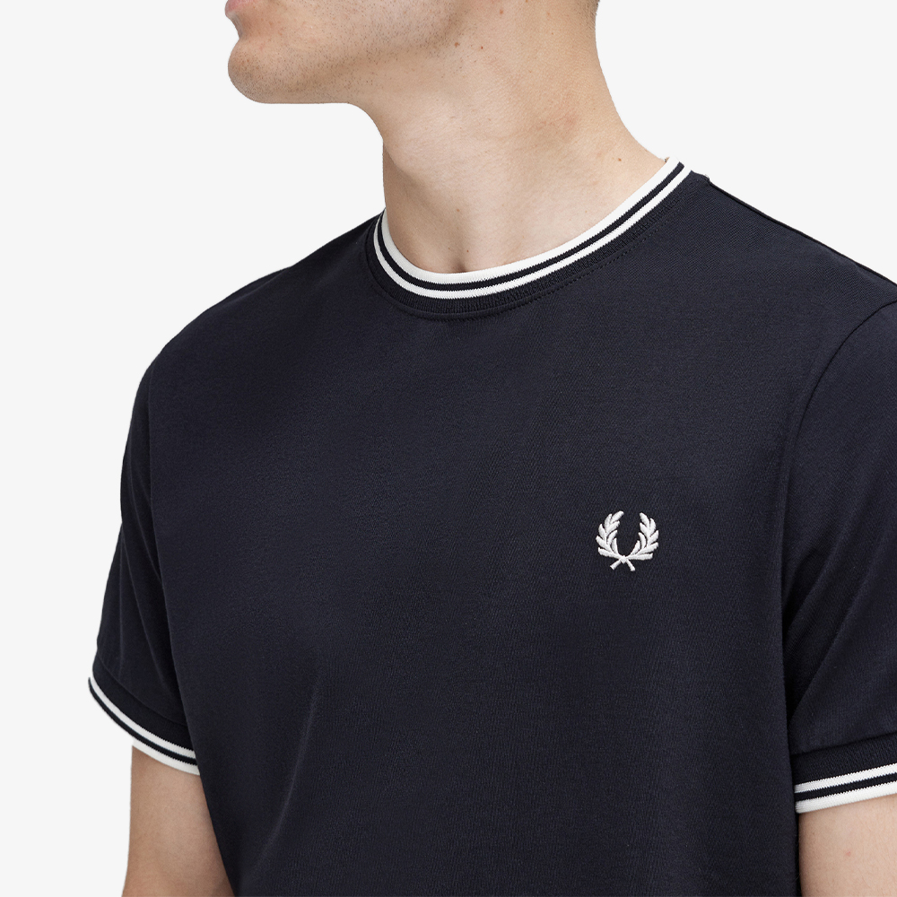 TWIN TIPPED T-SHIRT 넥라인과 소매단에 시그니쳐 트윈 팁 립을 매치한 티셔츠. 가벼운 코튼저지 원단으로 만들어져 부드럽고 편안한 착용감을 느낄 수 있으며, 목 둘레에 제원단 테이핑을 사용하여 깔끔하게 마감하였다.