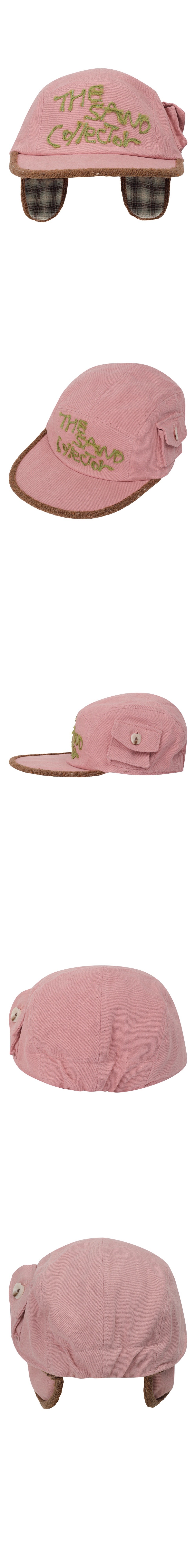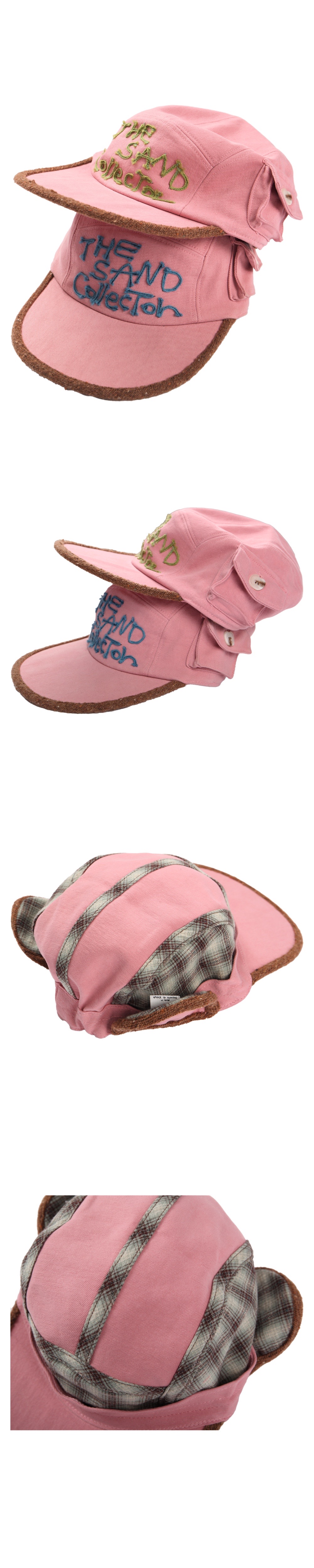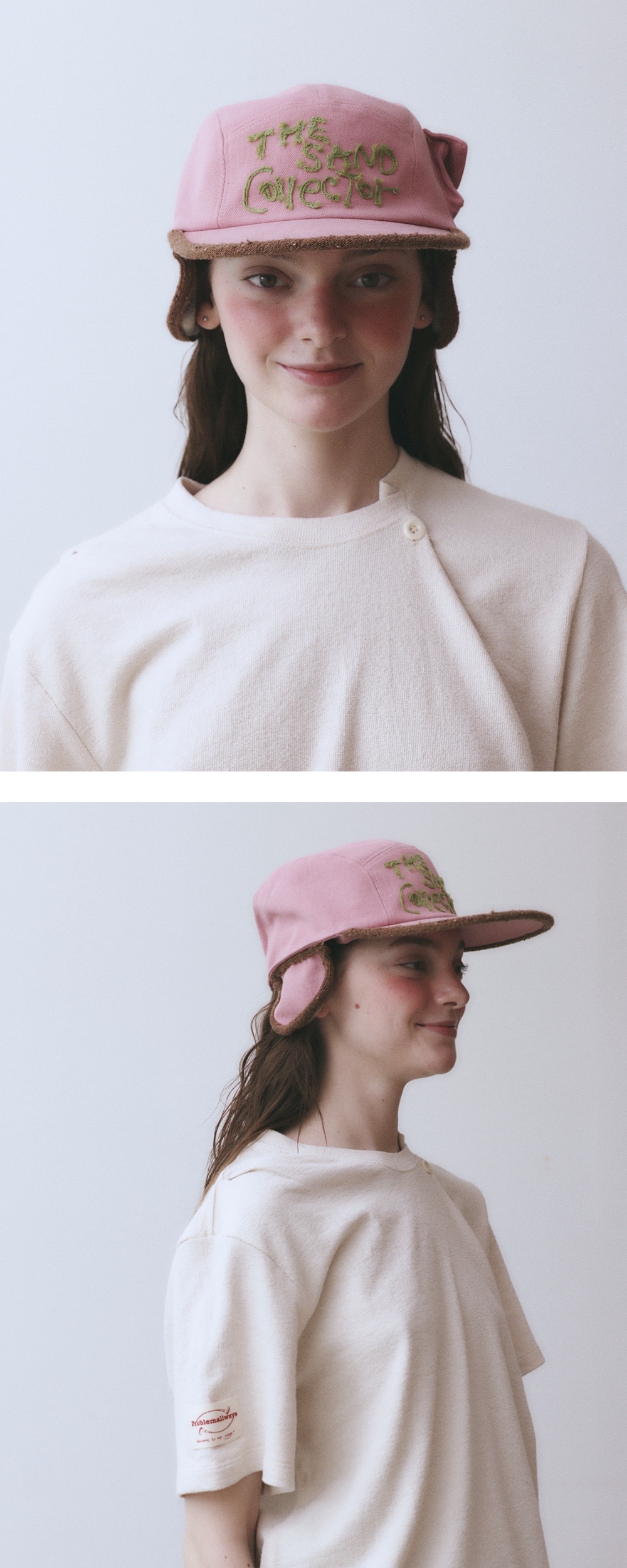 Cotton 100% (모자챙 해리: Wool 60%+Polyester 40%) 둘레가 넓고 깊은 핏 전면부 털실을 이용한 핸드메이드 자수 (수작업 특성상 글씨체가 조금씩 다름) 모자챙 앞부분 울 원단 해리 왼쪽 작은 건빵주머니와 조개 모양 단추 안감 체크 원단 디테일 히든 이어 플랩