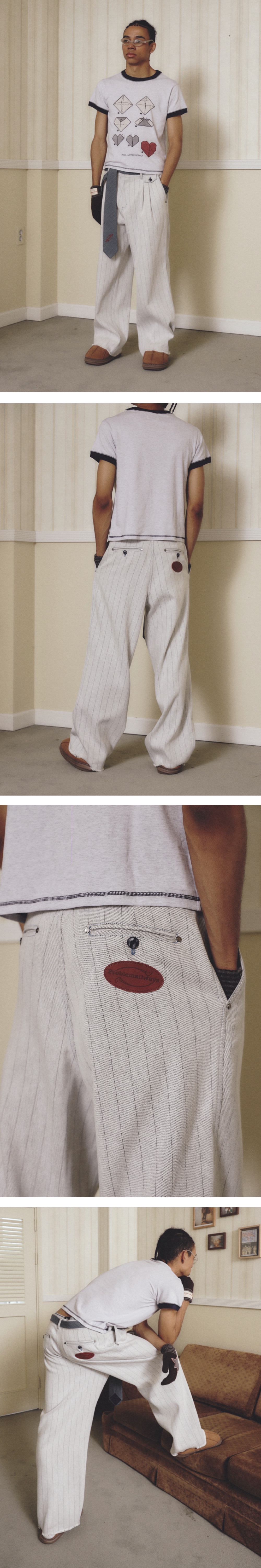 프라블럼올웨이즈 파파스 데일리 스트라이프 데님 팬츠 화이트