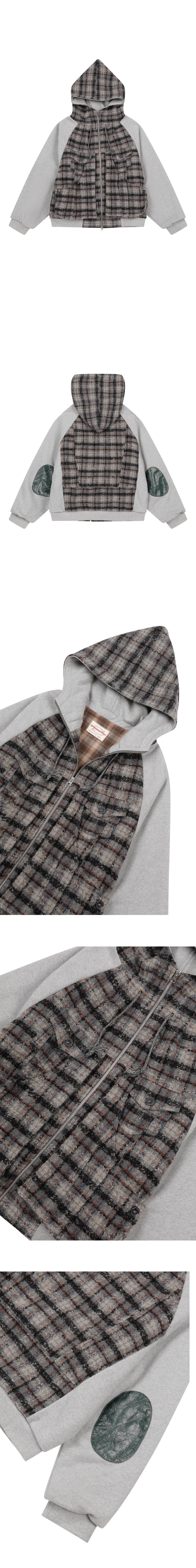 프라블럼올웨이즈 메모리 언밸런스 체크 후드집업 점퍼 그레이