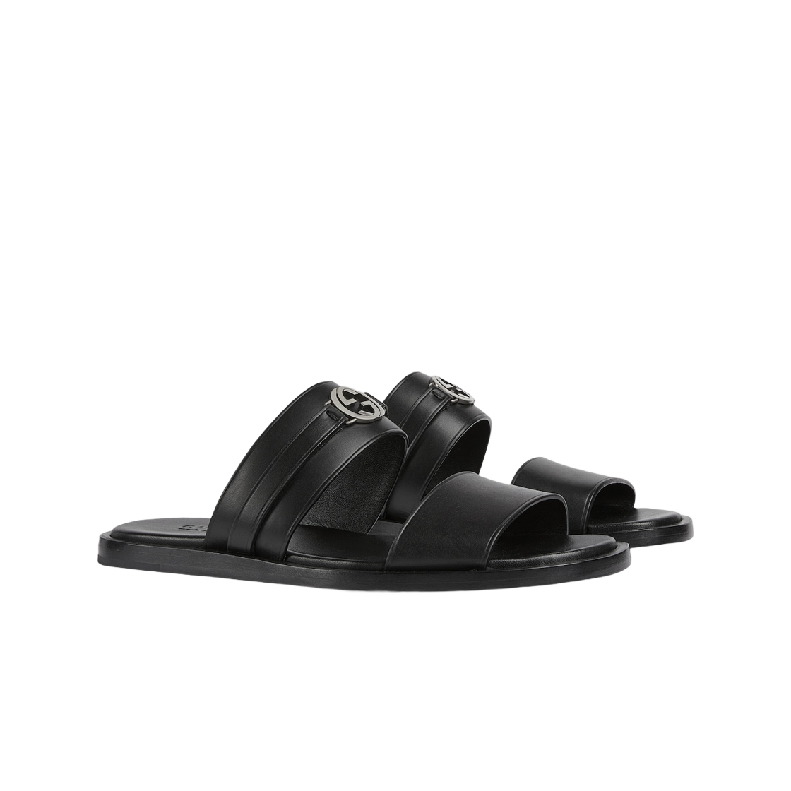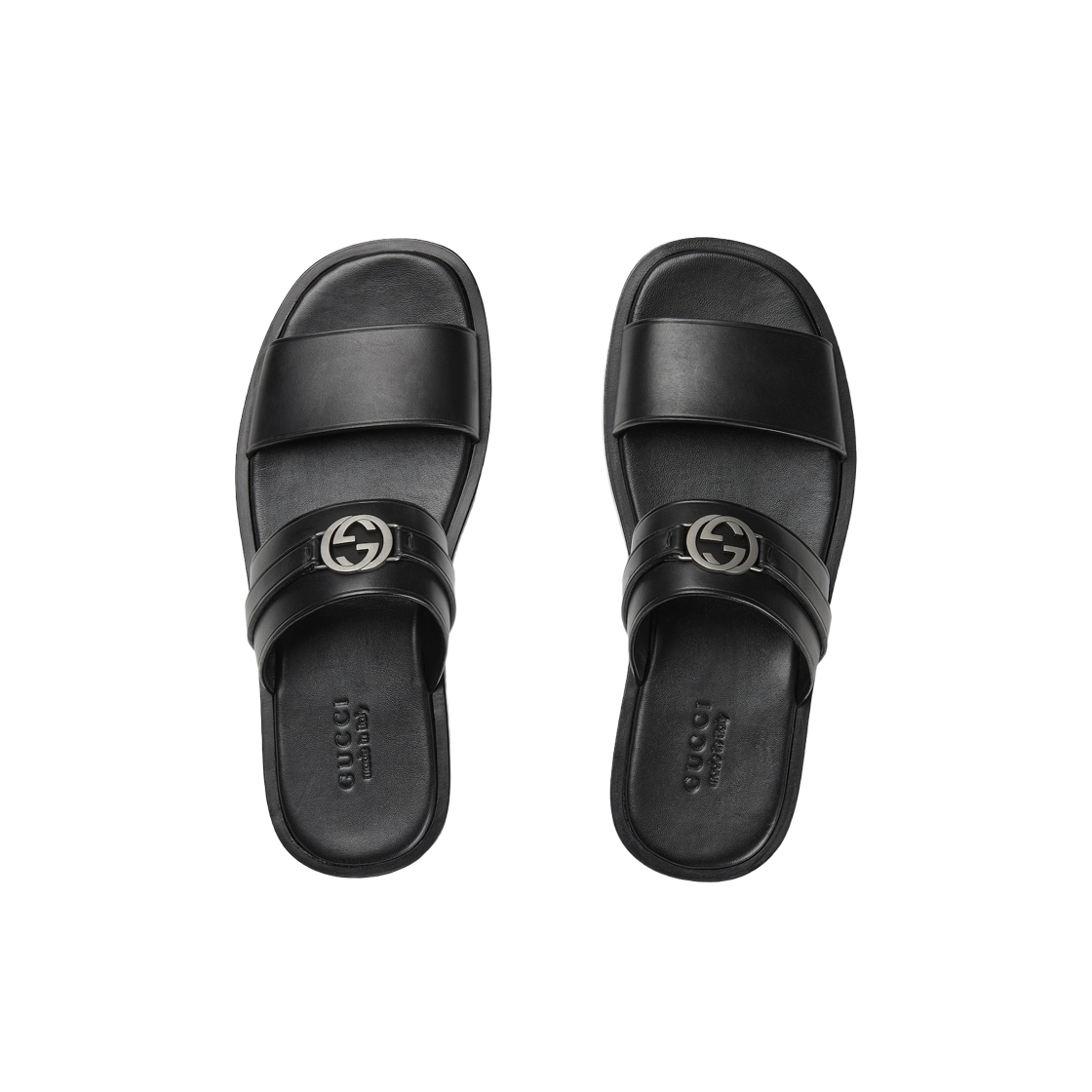 구찌 샌들 라운드 인터로킹 G 블랙 레더