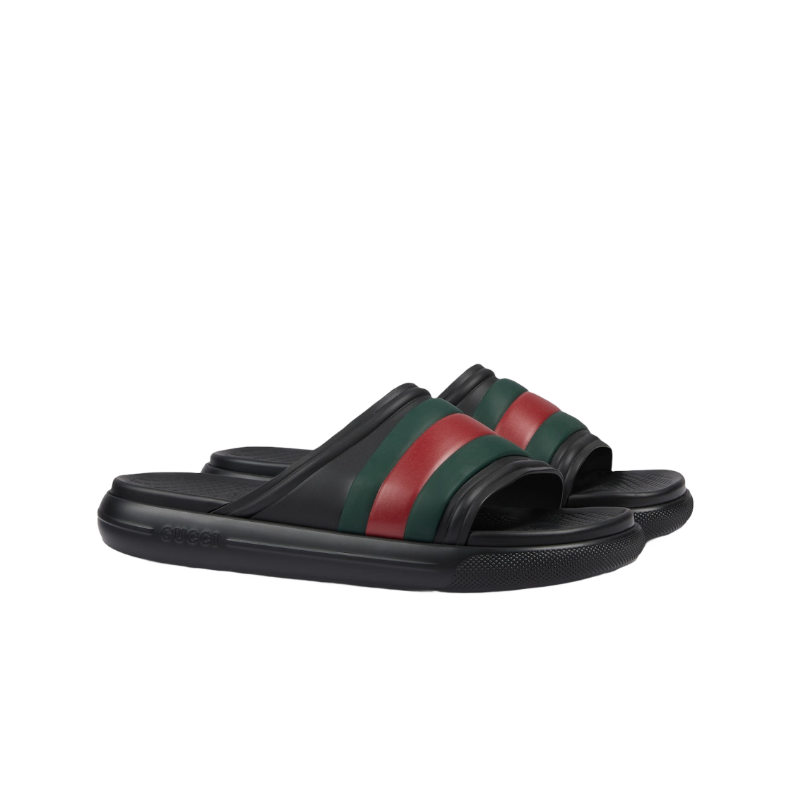 Gucci Web Slide Sandal Black Rubber Green Red Web