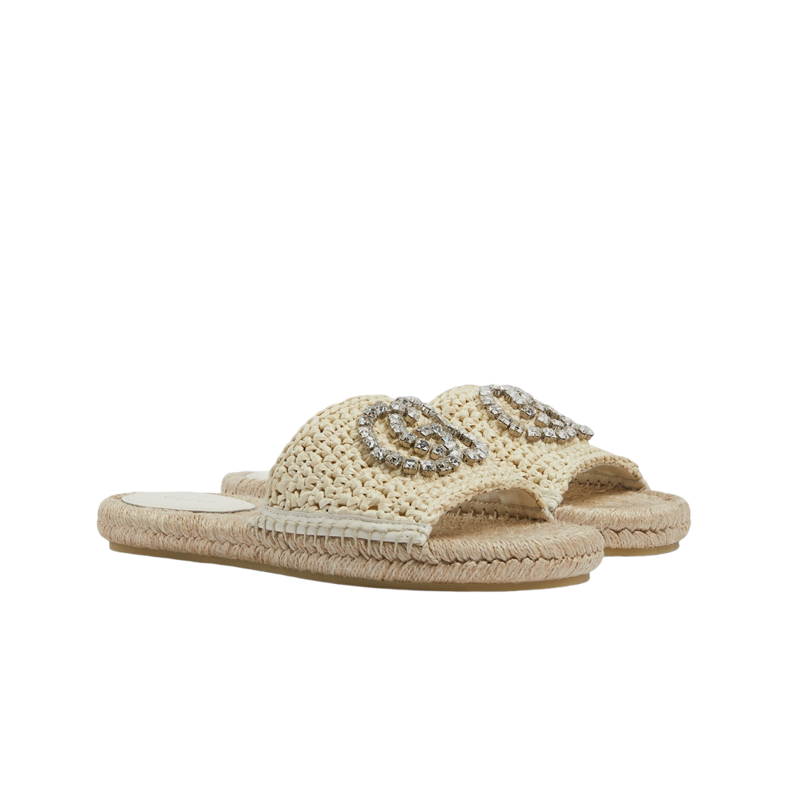 (W) Gucci Interlocking G Espadrille White Viscose Effect Raffia