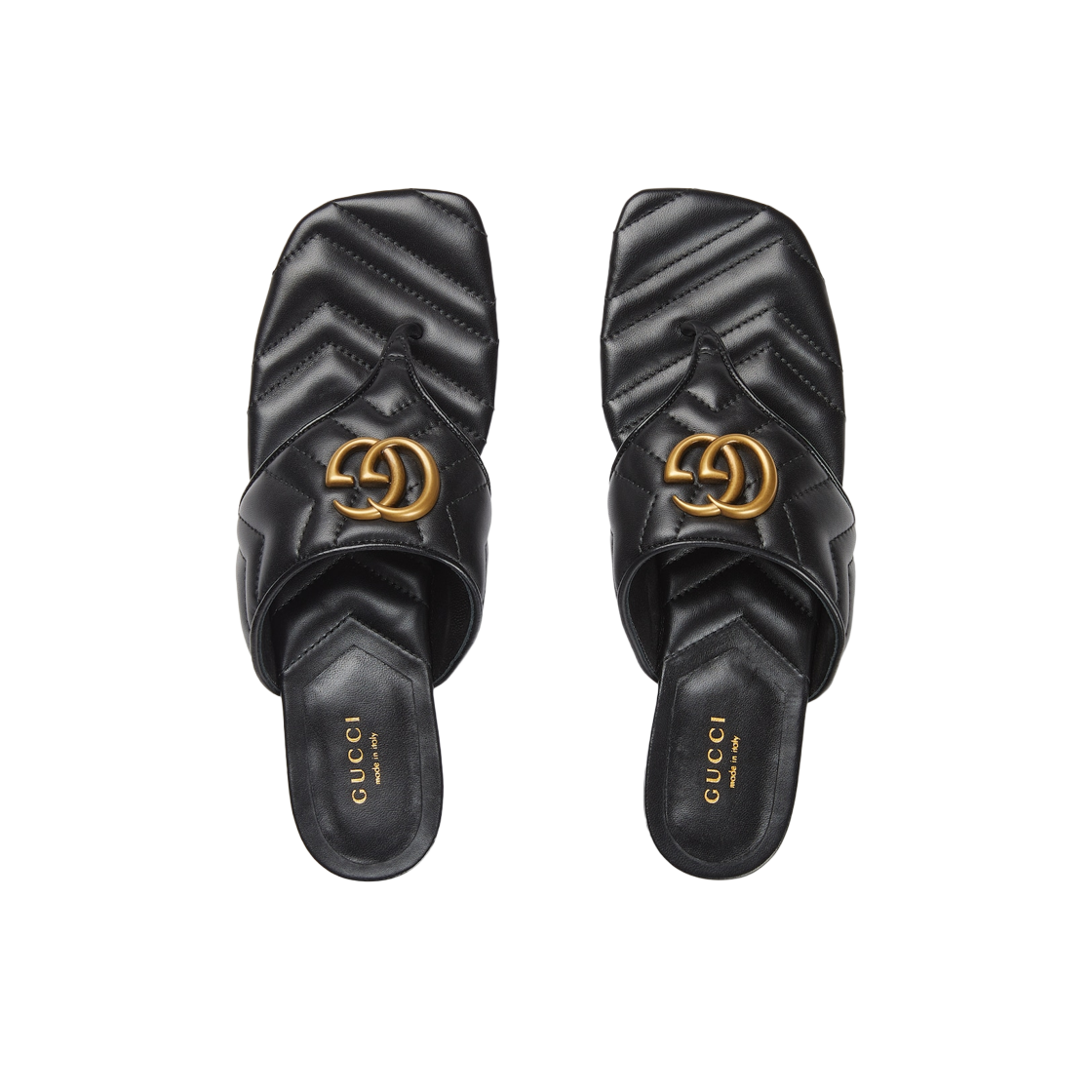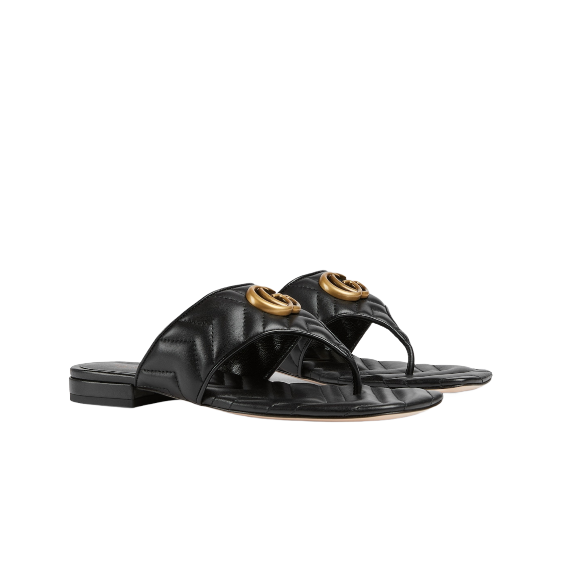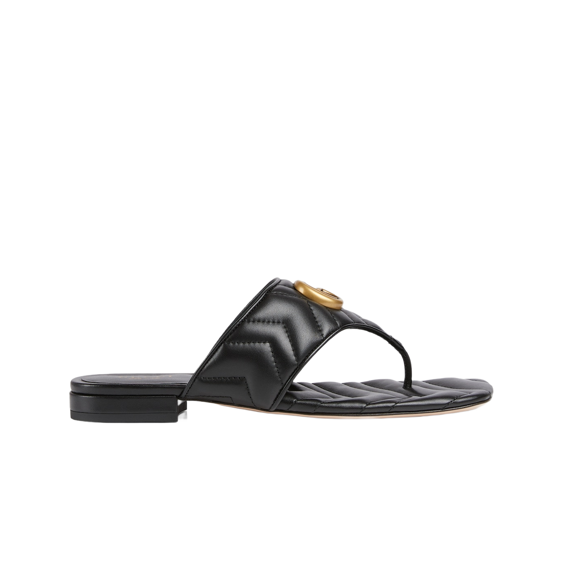 (W) Gucci Double G Thong Sandal Black Matelasse Chevron Leather