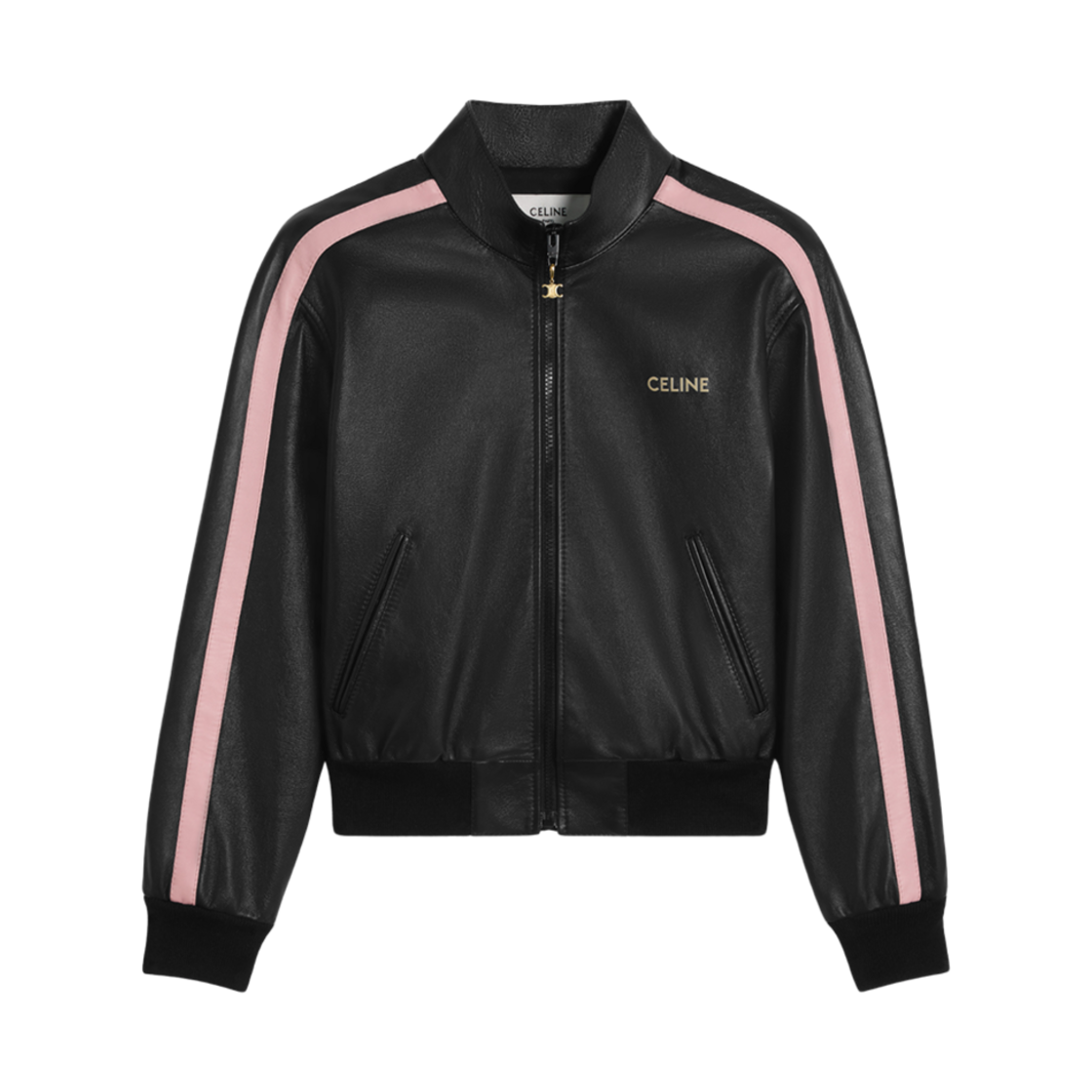 (W) Celine Tracksuit Jacket in Soft Lambskin Black Pink