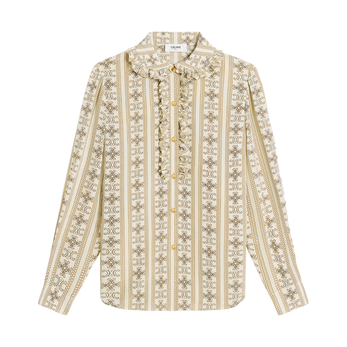 (W) 셀린느 프릴 블라우스 크레페 드 신 아이보리 토피 마론 글라세