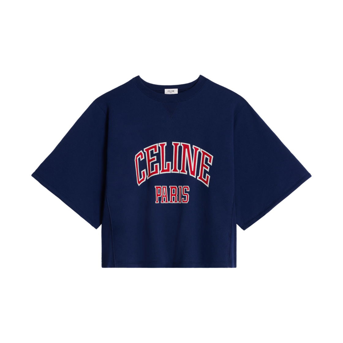 (W) Celine Paris Loose Sweatshirt in Cotton Fleece Navy Red Off White