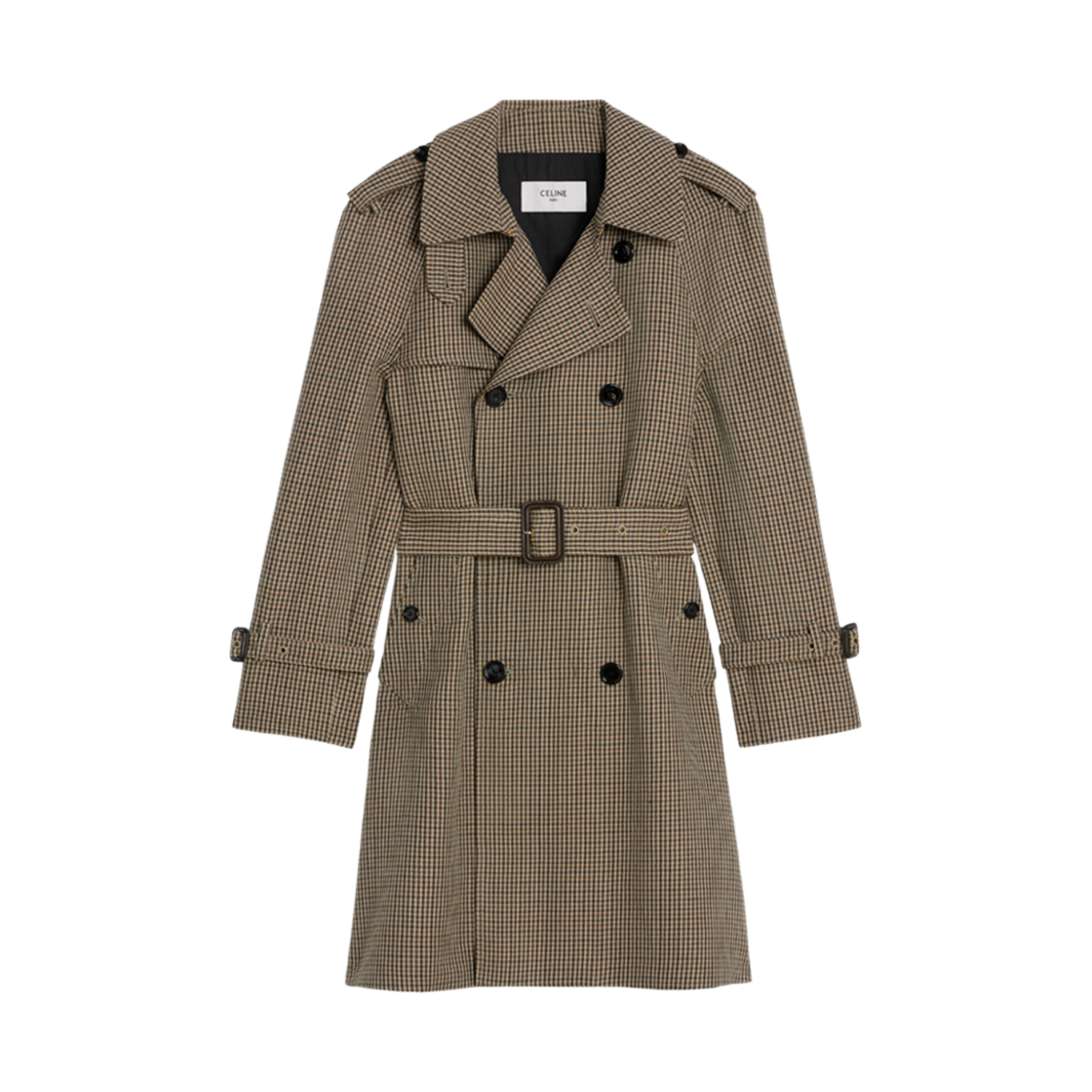 (W) 셀린느 로미 트렌치 코트 하운드투쓰 울 리넨 베이지 카멜 마론