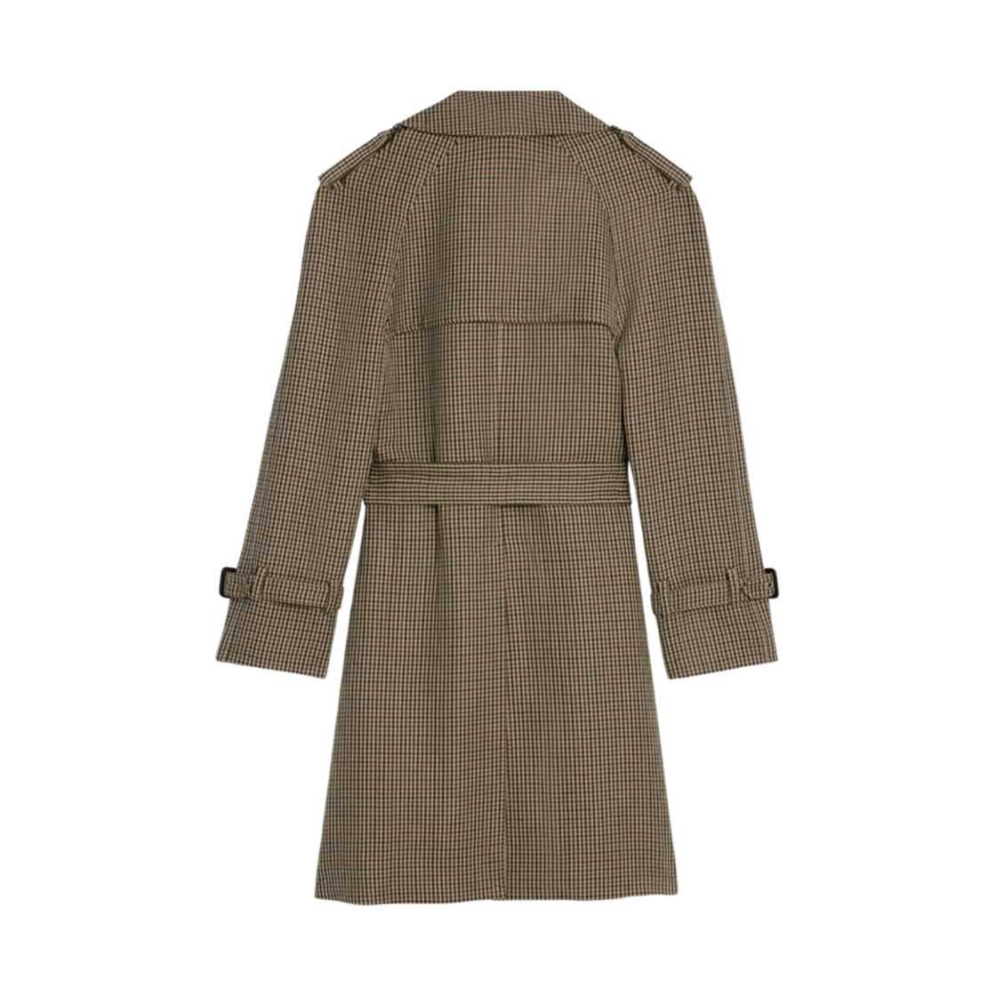 (W) Celine Romy Trench Coat in Houndstooth Wool Linen Beige Camel Marron
