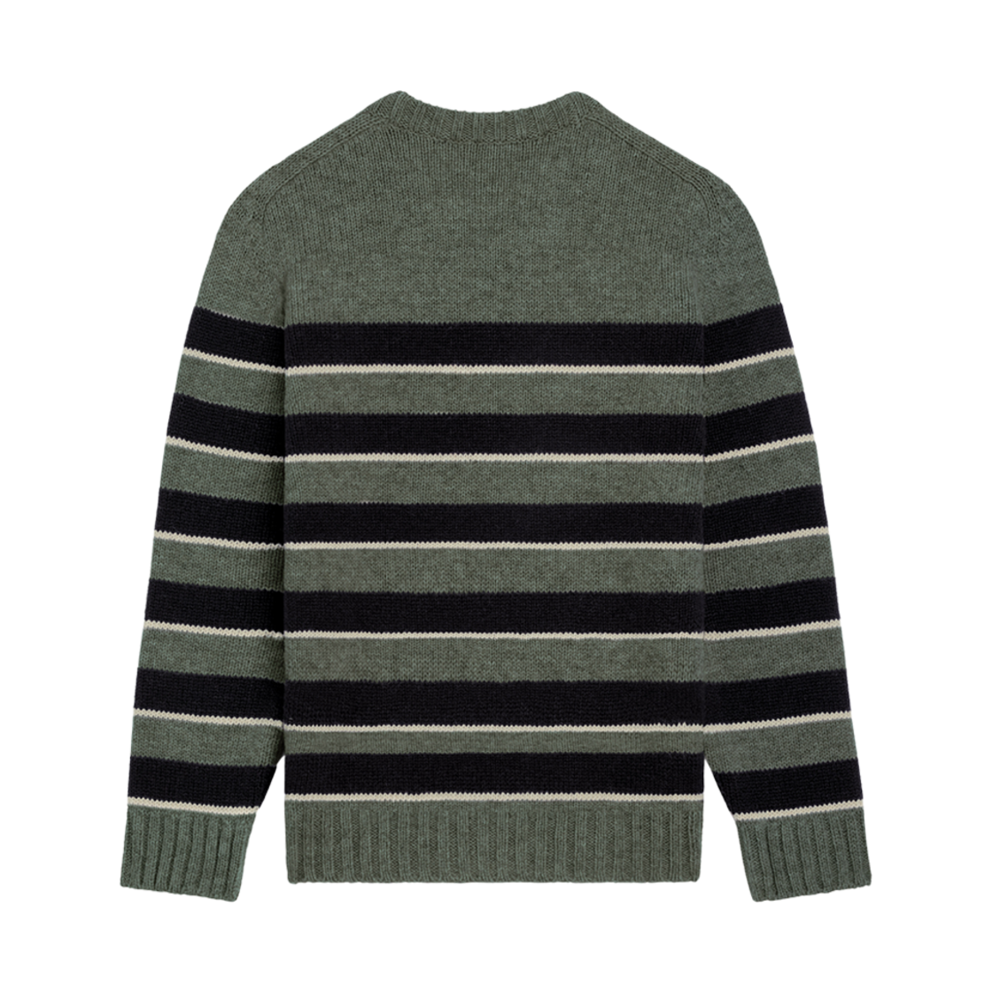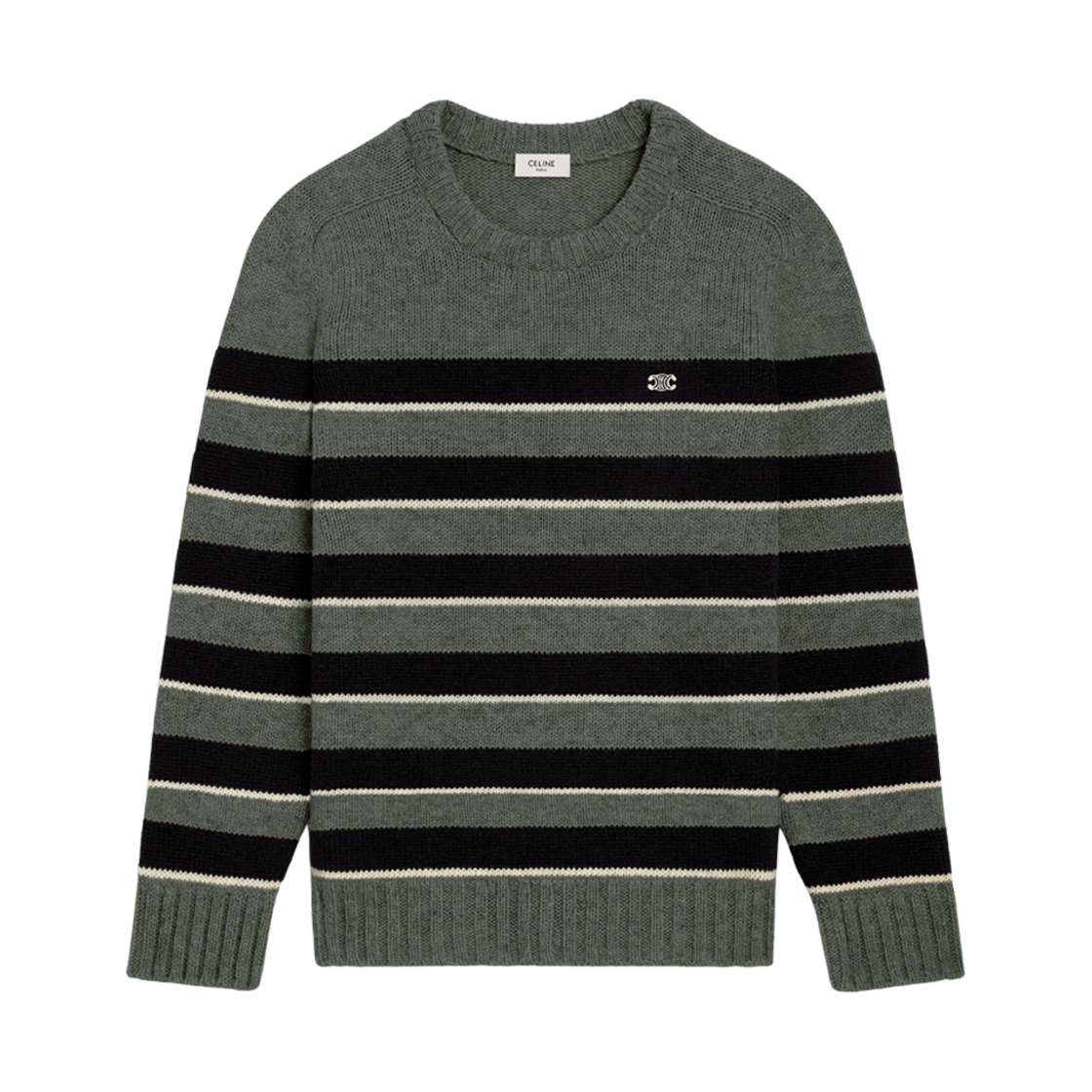Celine Striped Triomphe Crew Neck Sweater in Wool Grey Black