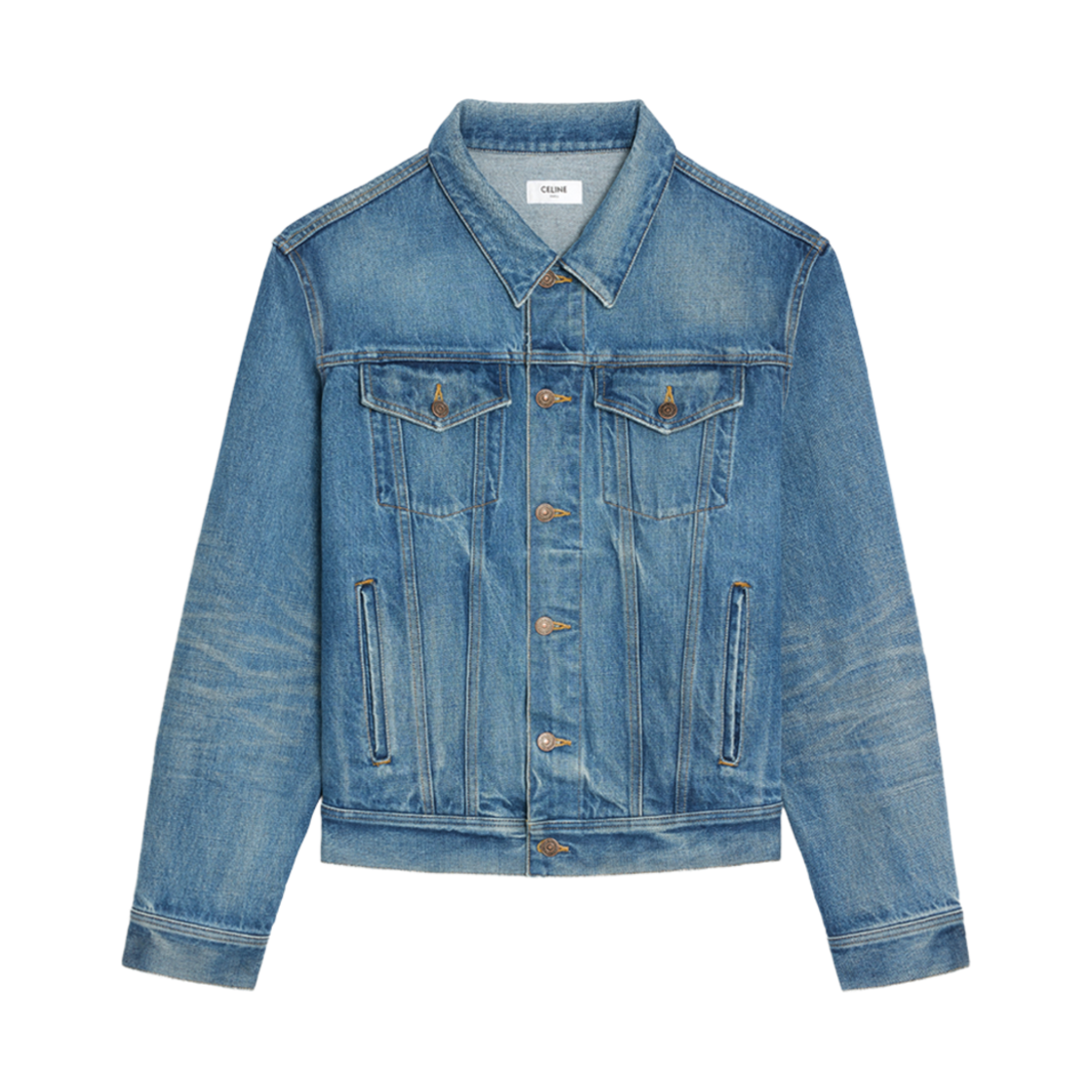 Celine V-Shaped Trucker Jacket in Union Wash Denim Vintage Union Wash