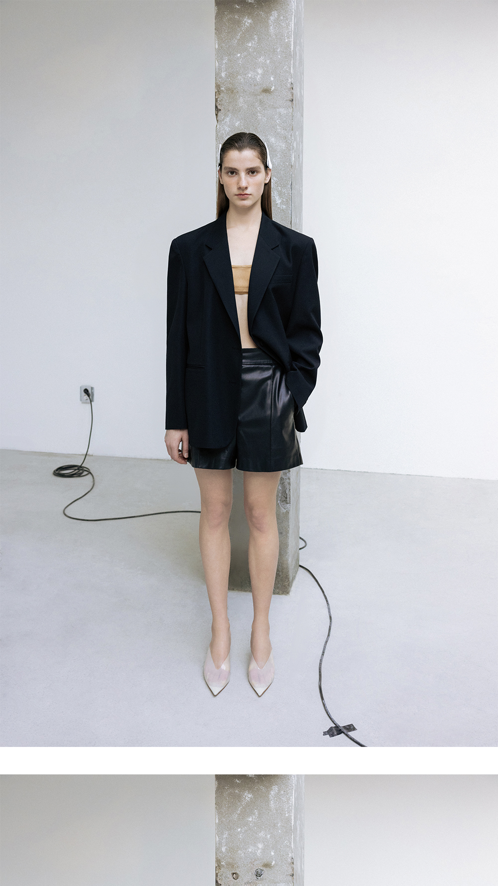 이번 시즌 레하에서 선보이는 레더쇼츠로 이태리산 램레더로 제작되었습니다. 램레더 특유의 부드럽고 은은한 광이 특징인 쇼츠입니다. 전체적으로 실크스트레치 안감이 들어가 있으며 양쪽 사이드 포켓과 중앙 핀턱 디테일이 포인트입니다. 입을 수록 체형에 맞게 만들어지는 레더제품의 장점이 잘 느껴지는 팬츠입니다.